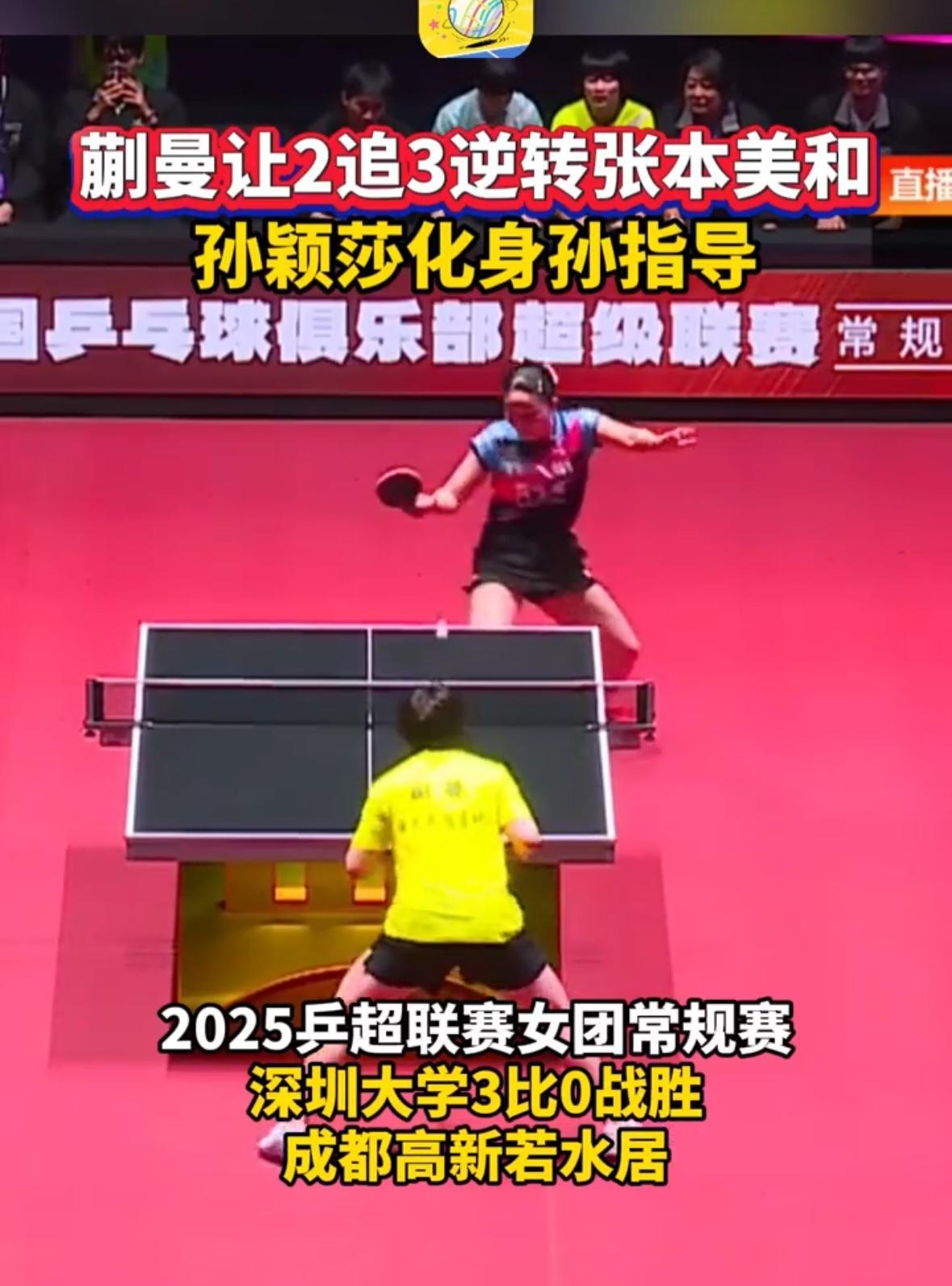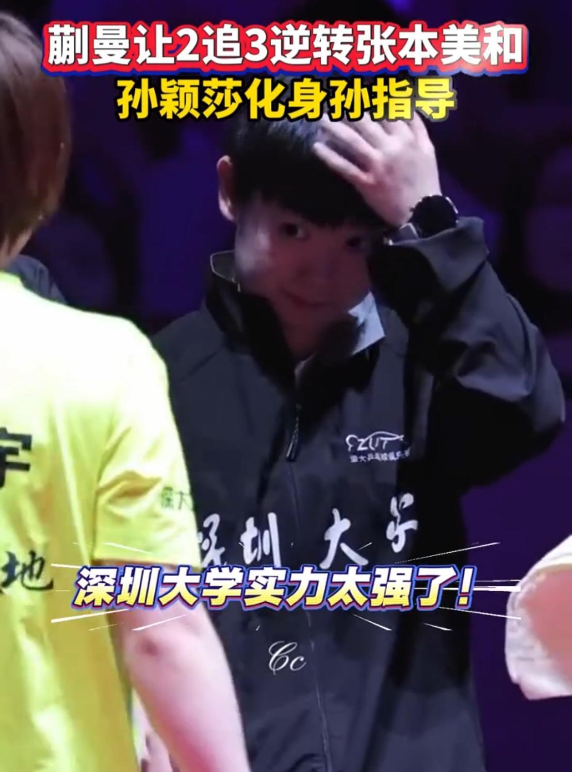 孙颖莎的优秀不言而喻,化身孙指导,这是给足了大丫头支持和力量! 蒯曼和莎莎都是邱