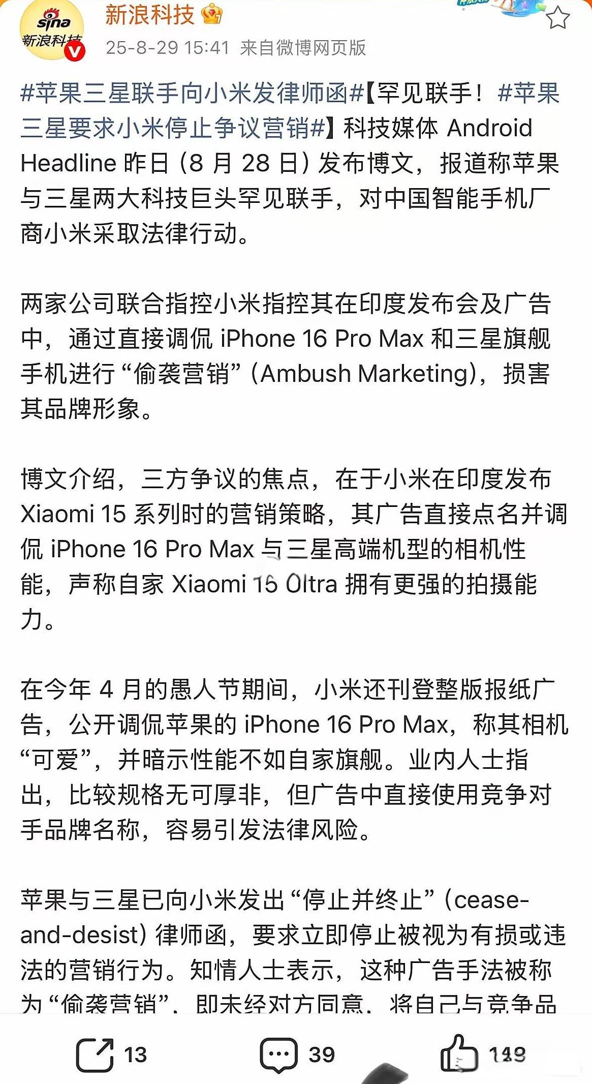 苹果三星状告小米,雷军天塌了! 如今,大家都在盯着小米后续怎么应对。是低头认错,修改广告策略,还是硬刚到底,在法这不仅关系到小米在印度市场的未来,也可能影响整个手机行业的营销风向。咱们就等着看,这场科技巨头间的大战,最后会如何收场。