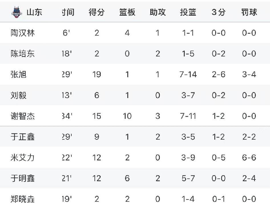 挺进决赛!山东79:73青岛 张旭暴走、状元给力、于氏兄弟可期 CBA夏季联赛(青岛站)半决赛,山东、青岛上演同城德比,山东79:73战胜青岛,成功晋级决赛。 刚续约的张旭本场大暴走,拿下全场最高的19分,投篮14中7,三分球6中2,罚球4中3,并有4次抢断,成为球队晋级决赛最大功臣。 谢智杰延续上一场的优异表现,拿到两双,本场贡献15分10板3助攻2抢断,投篮11中7,三分球2中1。这个休赛期,谢智杰的进步非常明显,得分、篮板、防守都得到质的提升,新赛季有望打出匹配状元身价的数据。 于正鑫、于明鑫兄弟今天各获得二十几分钟的上场时间,于正鑫贡献9分1板2助攻,于明鑫贡献12分4板2助攻,成为今日获胜的X因素。 #山东男篮# #青岛男篮# #CBA夏季联赛#