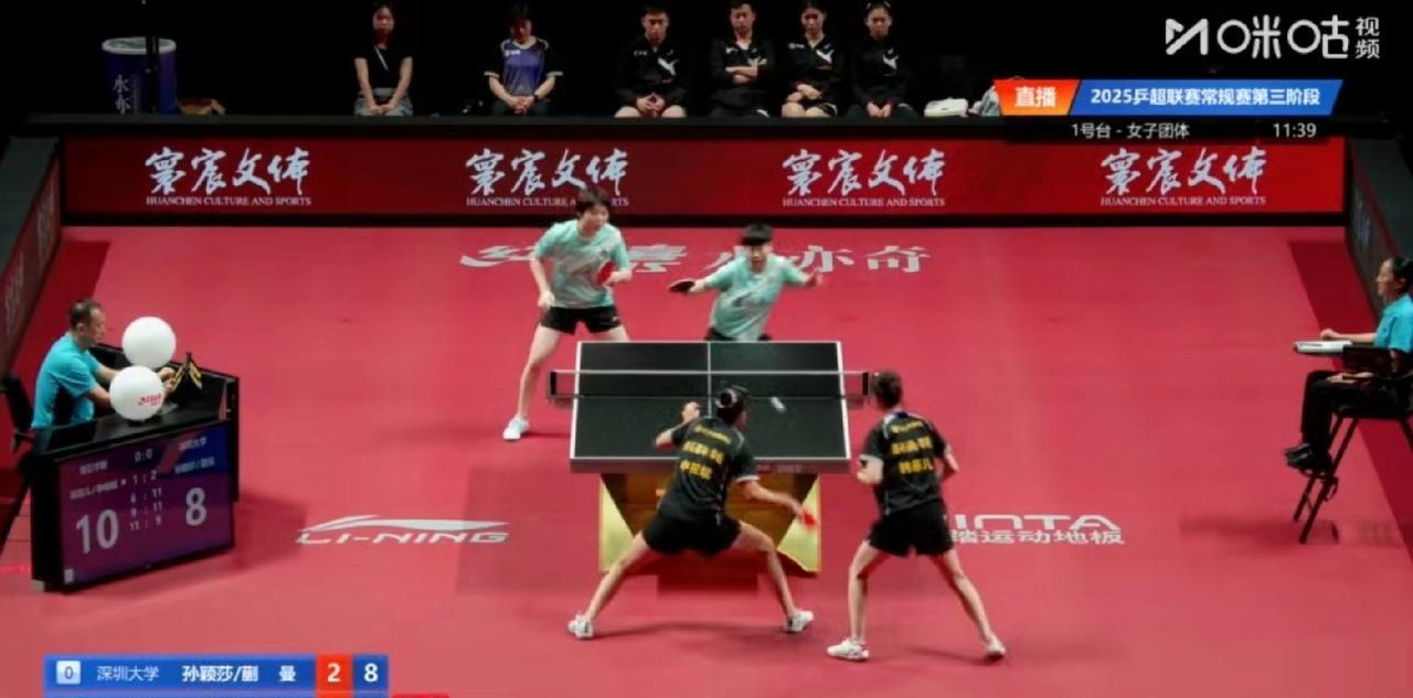 漂亮!!深大幼儿园莎曼 3-1 韩申组合,先拿下一局!![赞][赞] 第四局惊险,领先又落后最后又逆转!!胆小的都不适合看,看到有好多球迷在评论区说吓死了![捂脸][捂脸] 果然莎局的局点才是局点!! 8-10的时候我都觉得要没了,韩申要拿下这一局了,出乎意料的被莎曼13-11逆转了! 运动员的心理素质的强大,不得不说牛呀!![赞][赞] 下一场是小蘑菇出场,深大加油!![加油][加油]