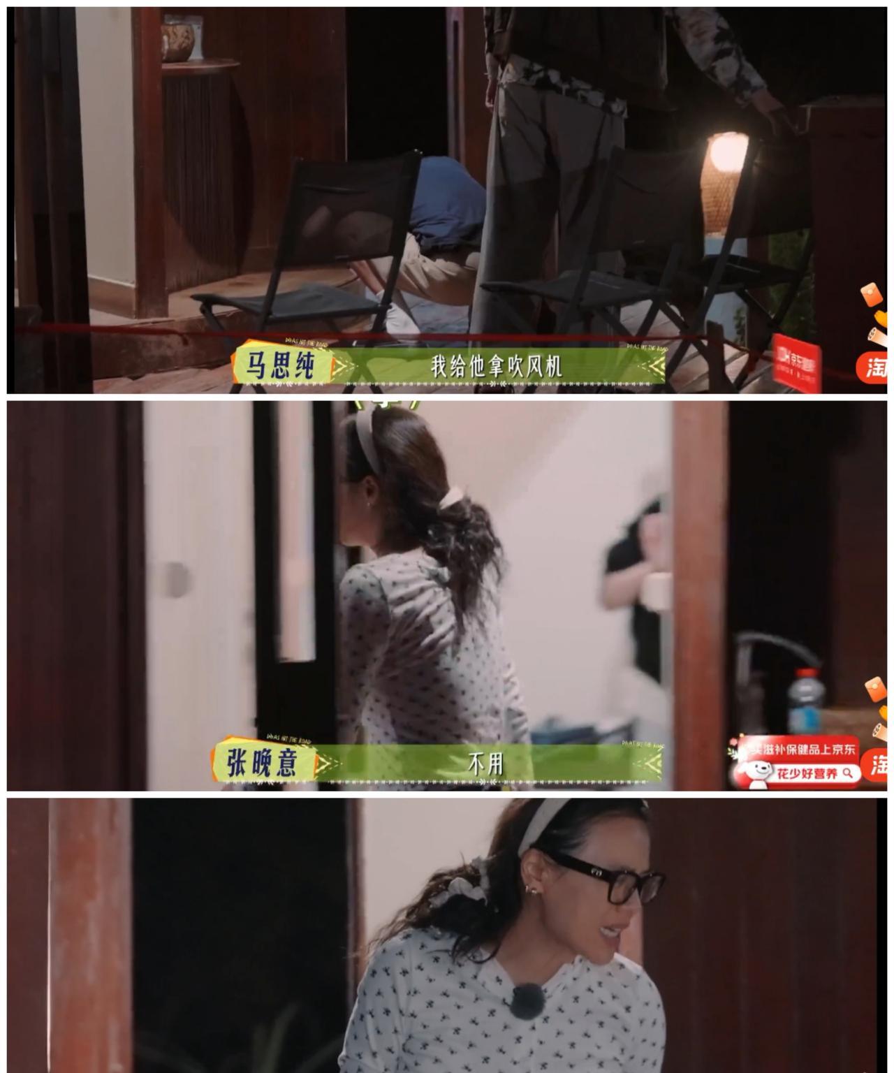 马思纯眼睛都睁不开了, 还坚持帮张晚意举着插线板吹头发 张雅琪劝马思纯放下, 马