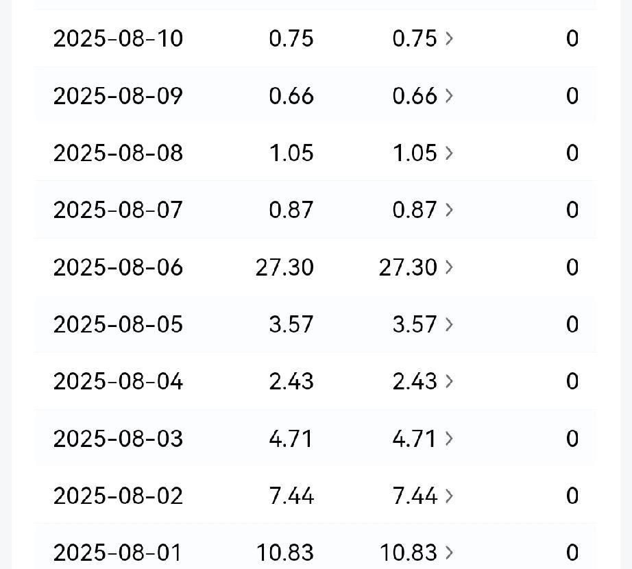 28号实行新规定,我当天输出3个作品,全部都是记录生活的原创作品,获得了6.45元。 29号我同样输出3个原创作品,加上前一天的尾流,我获得了10.23元(图一划线以上)。 七月底八月初的时候,我可发狠呢,基本每天6~7篇输出,那时收入也很不错,隔三差五就有个小爆款,感觉越写越有劲(图二)。 现在又开始有规律输出作品,收入又慢慢提高了,还是那句话,一分耕耘一分收获! #分享今日趣事#