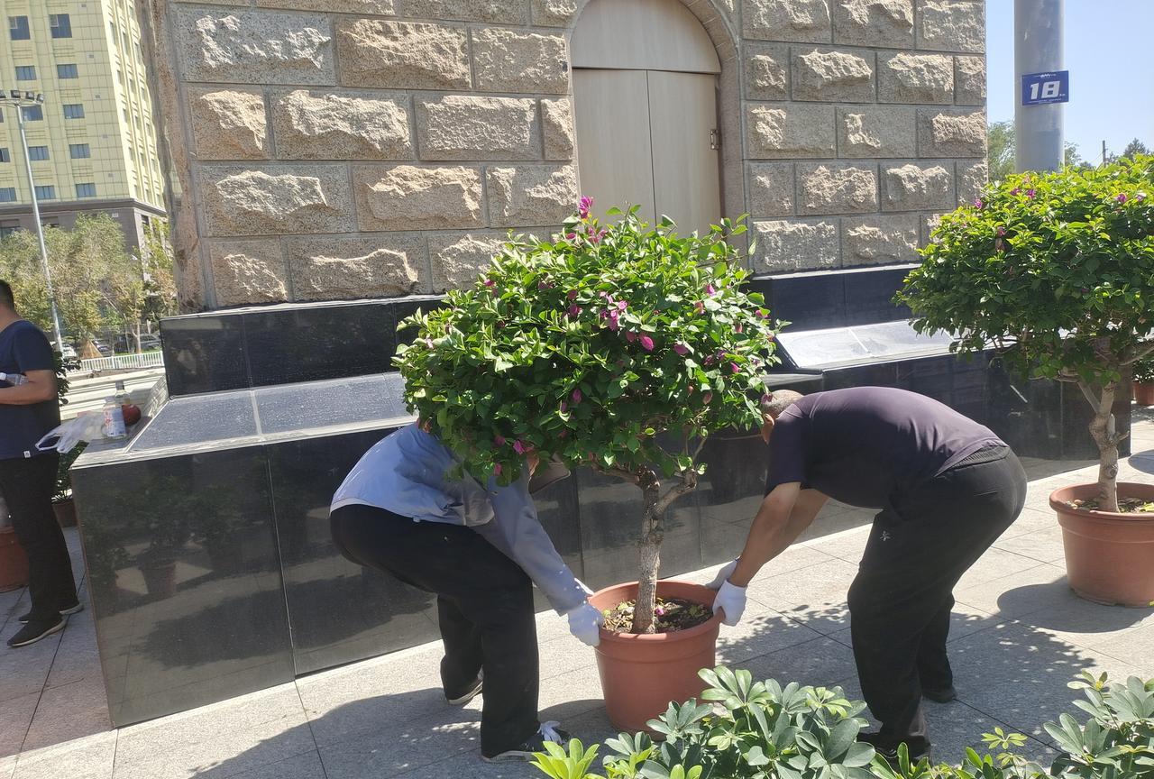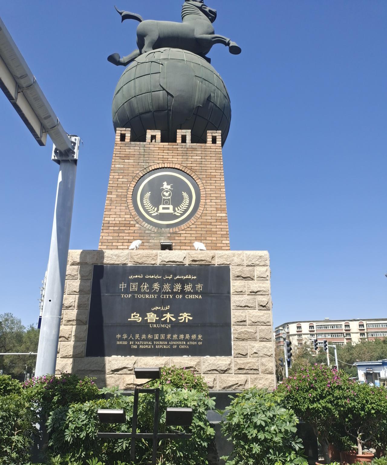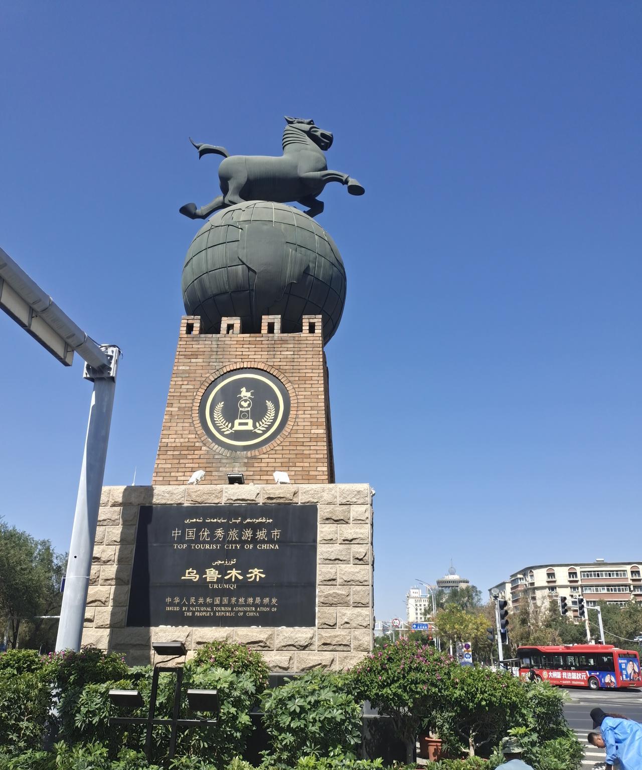 乌鲁木齐市全国旅游城市雕塑——“马踏飞燕”城市雕塑周围,已被高新区(新市区)园林