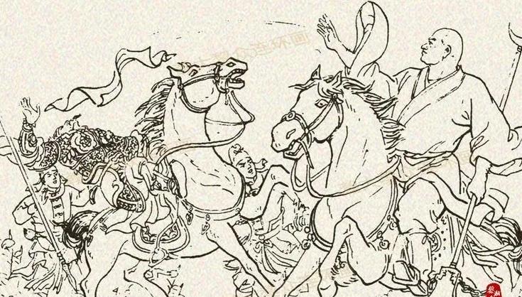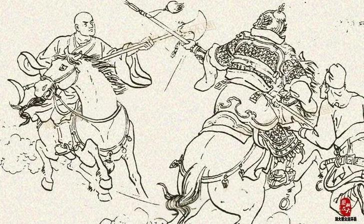 洛阳王连连失利闭门不战,这一天突然打开城门,出来一位和尚,指名道姓让秦琼出战。 秦琼在两个马童王九龙、王九虎保护下来战大和尚。秦琼说,出家人讲的是扫地恐伤蝼蚁命,爱惜飞蛾纱罩灯,你为何违背佛规来到阵前杀生?大和尚说,你废话少说着家伙,抡日月方便铲就砸。 两人打了五六个回合,大和尚趁二马错镫之机,从袖口抻出一条青绸子,向秦琼顺风抛去,青绸子正蒙到秦琼脸上,秦琼登时摔倒马下,人事不省。两个马童一见不好,晃刀一个对付大和尚,一个砍和尚马。大和尚也不恋战,掉转马头收兵回城。