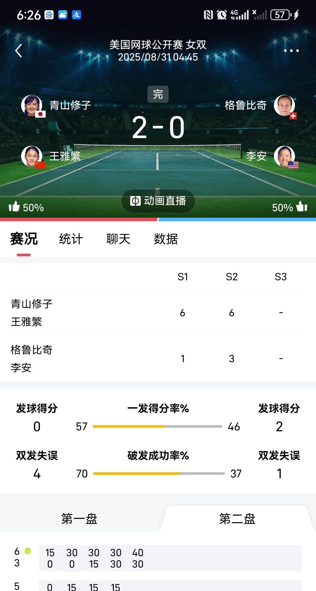 一觉醒来,中国金花王雅繁在单打出局后,女双赛场又传捷报,她与青山修子组合直落2盘