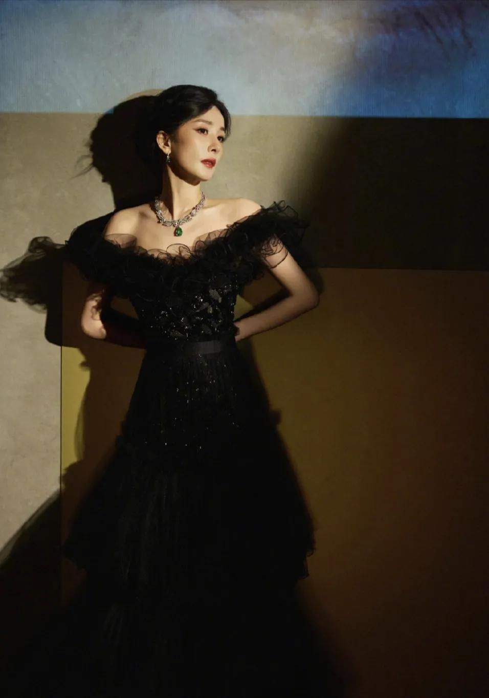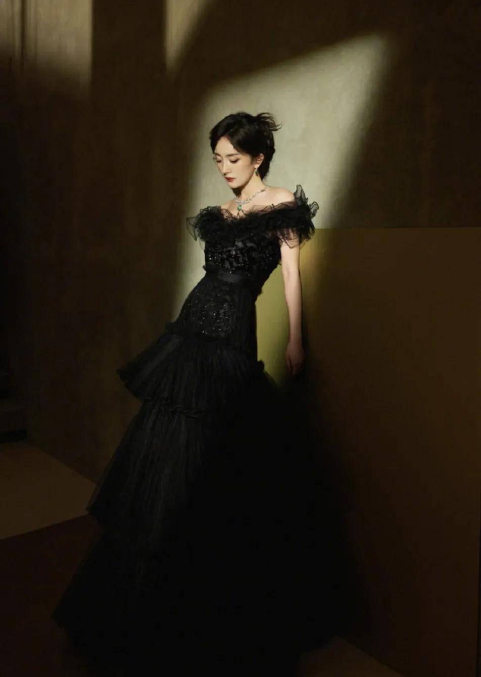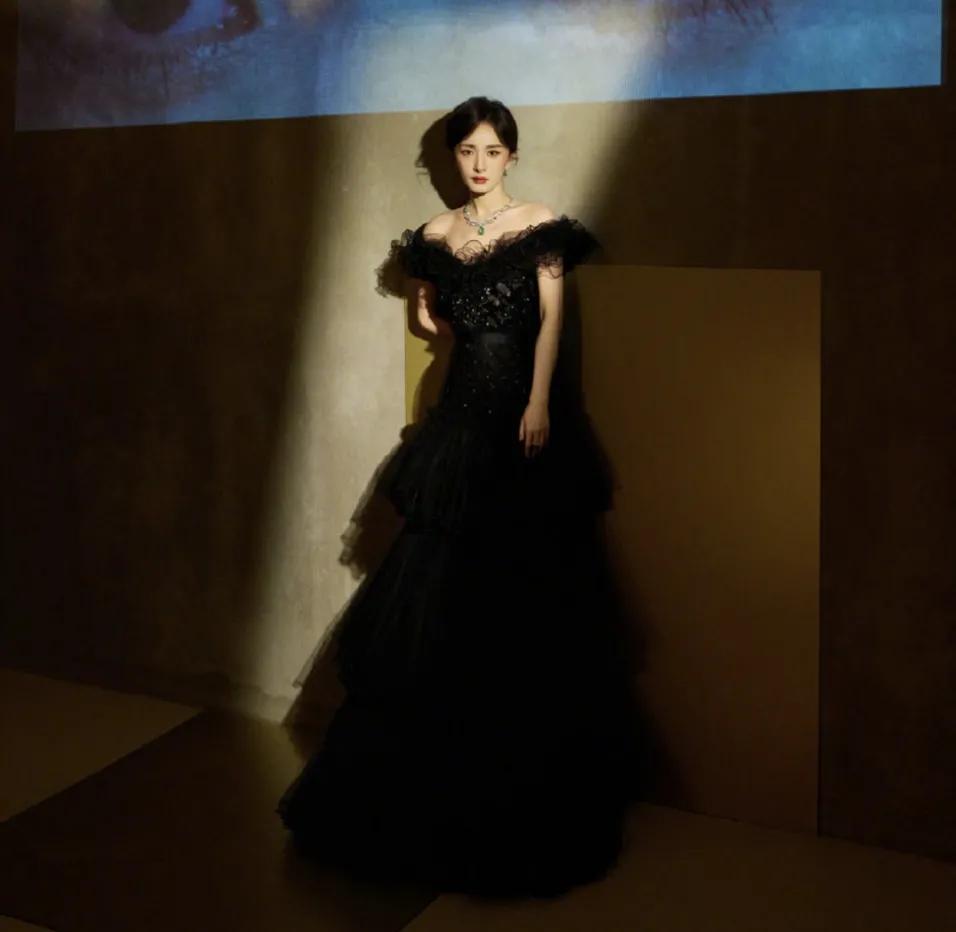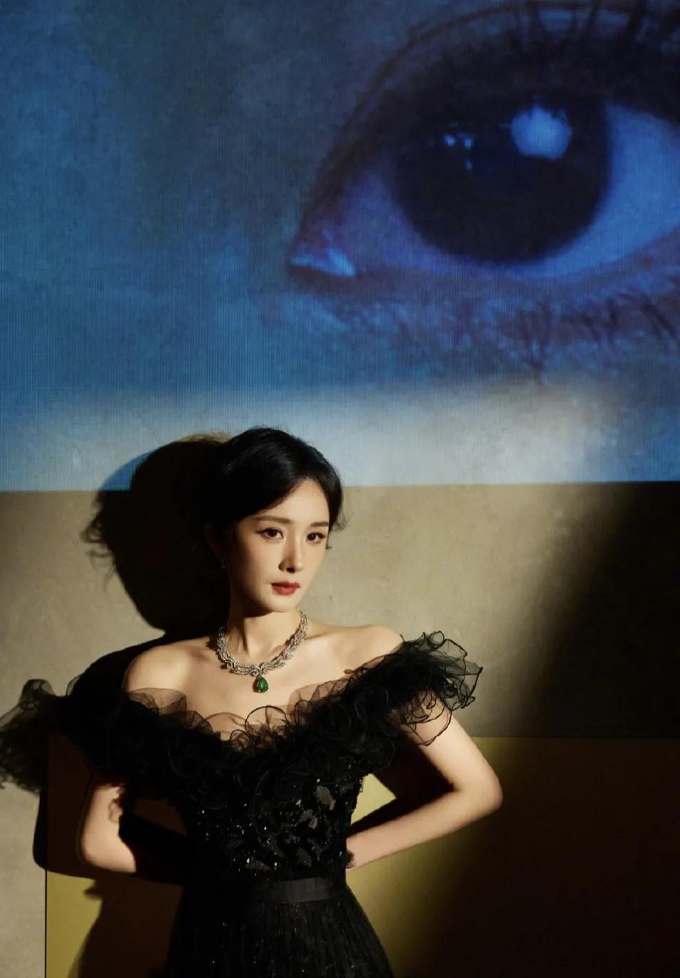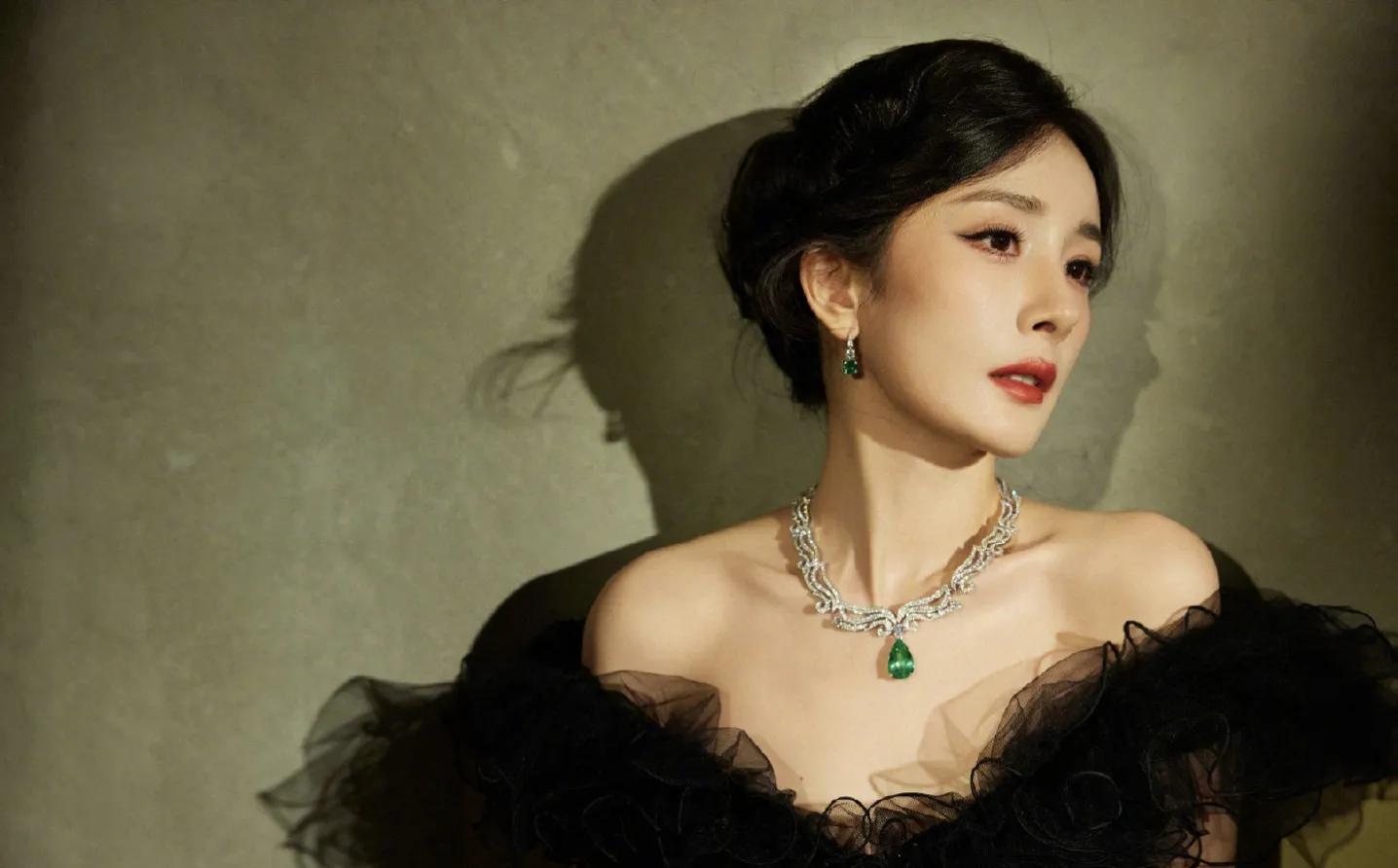 杨幂芭莎盛典露肩礼裙秀天鹅颈,绿宝石配完美身材,气质碾压红毯