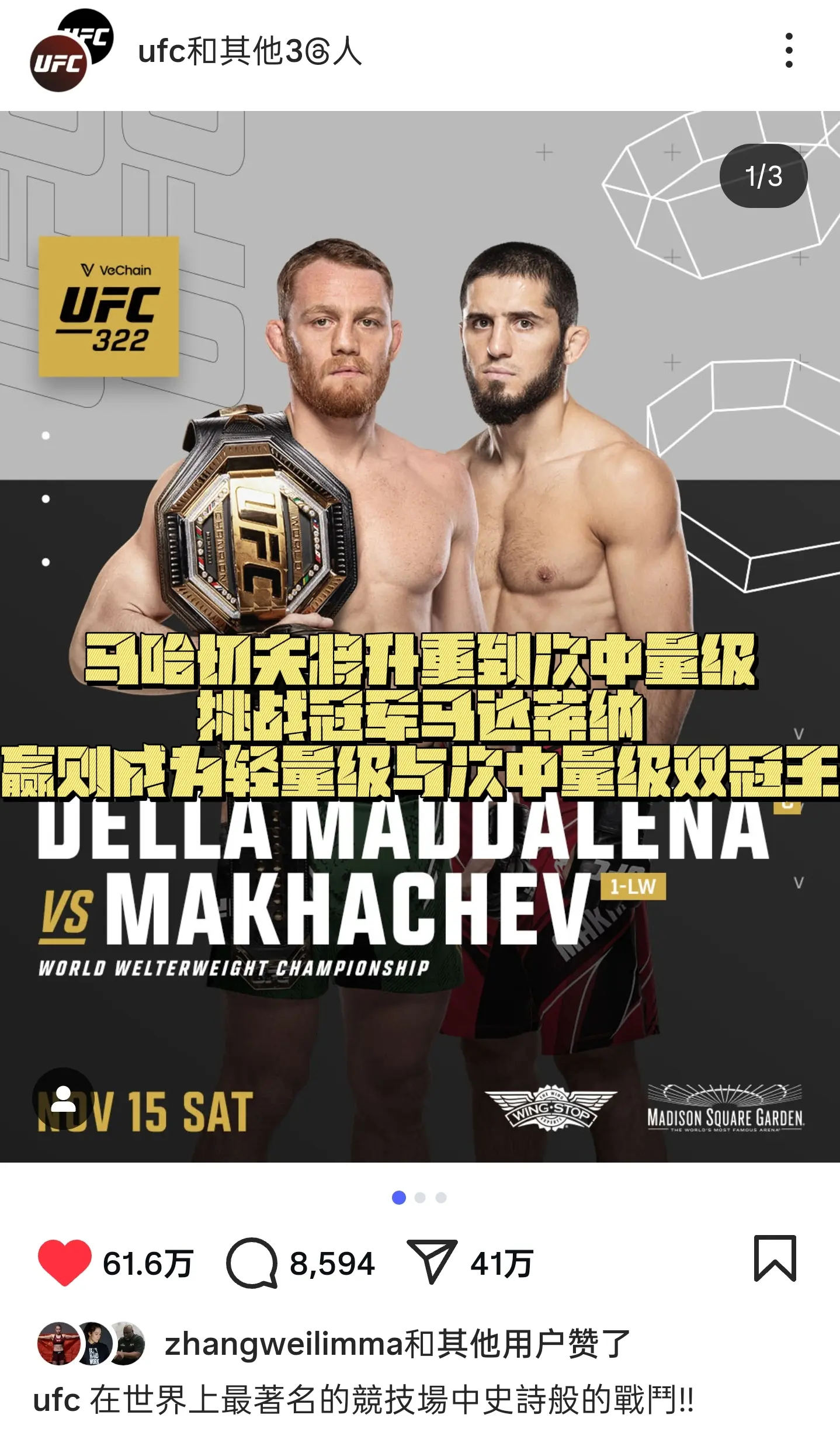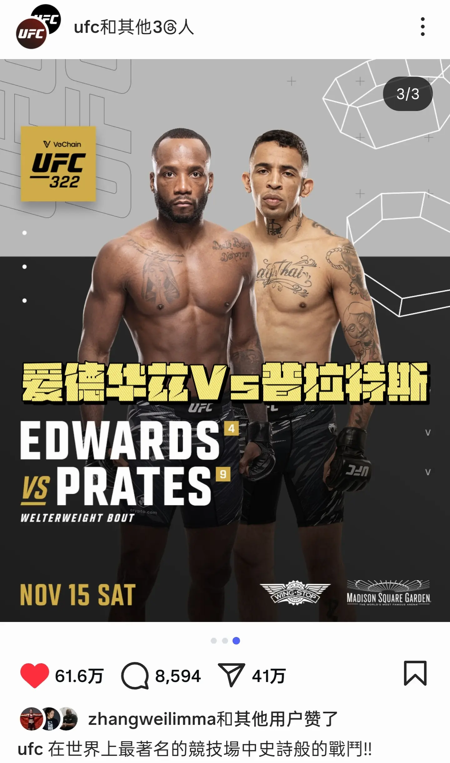 人民的冠军,鼓舞人心👊再次刷新UFC降服记录