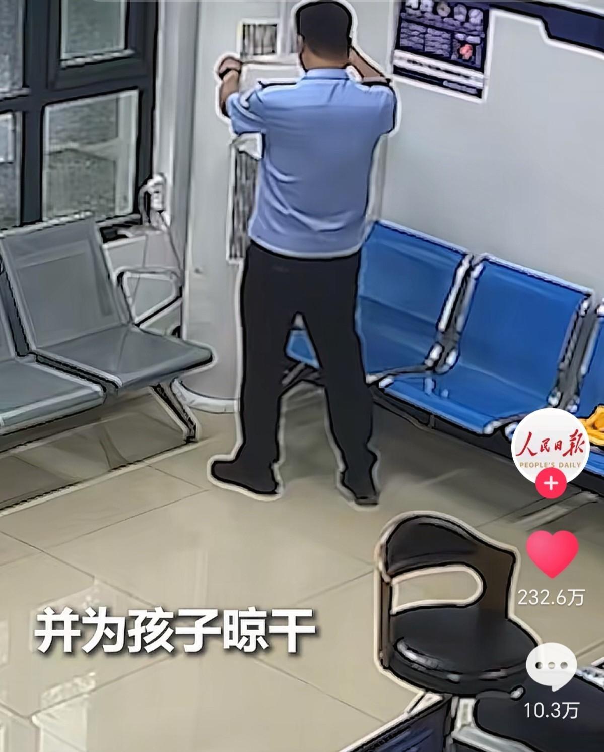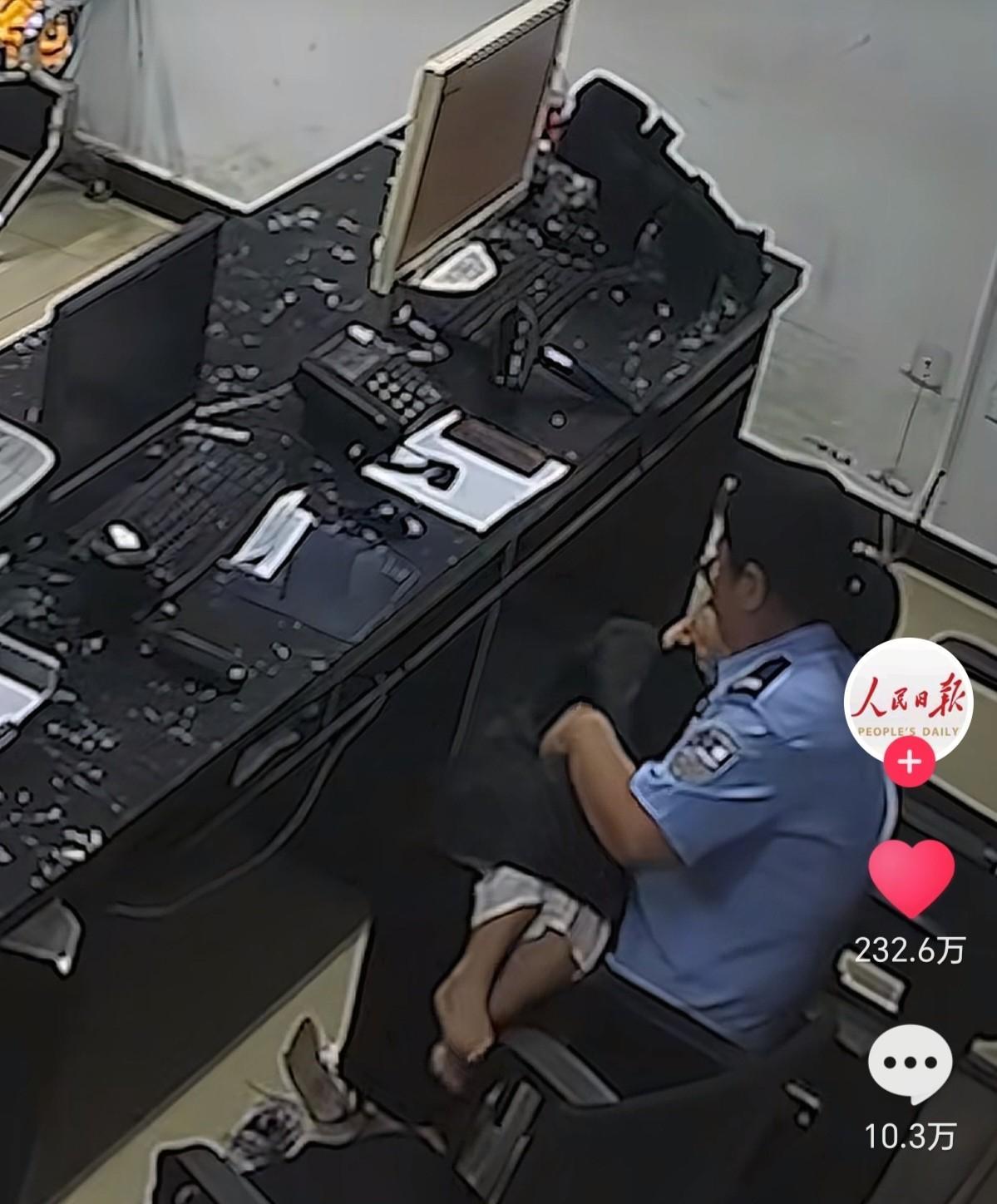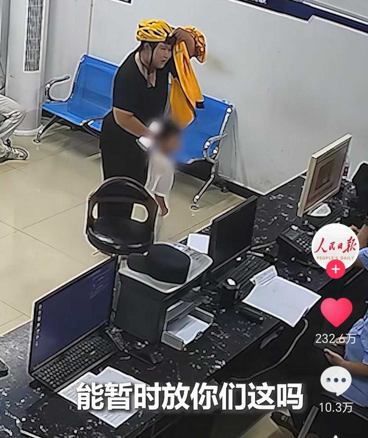 看哭了! 也许是生活所迫,一位外卖员妈妈骑着小电驴,带着年幼的孩子一起送外卖。没想到,一场暴雨突如其来,孩子被淋湿了,妈妈心疼的不行,但是外卖还得送,无奈之下,这位外卖员妈妈只好求助警察。 这位外卖员妈妈带着孩子来到派出所,跟警察说,下大雨了没办法带着孩子送,家里没人,能不能暂时把孩子放这? 警察不仅答应了,还把孩子照顾的很好。一位女民警走到孩子身边,摸了摸他身上的衣服,湿答答的,赶紧帮孩子把衣服脱了,怕着凉,脱了衣服后又拿来干净的衣服给孩子披上。 另一位男民警则把孩子换下来的衣服对着空调吹,帮他吹干,等下回家好穿上。 孩子等着等着,就困的睡着了,窝在椅子上睡,女民警看到后把孩子抱在怀里,这样睡的舒服点,就这么抱着,直到孩子妈妈过来接。 看到这一幕幕,真的很感动。这两位民警真的很细心了,照顾这位小男孩就跟照顾自己家的孩子一样,怕他冷,怕他睡的不舒服,真是细微之处见人心,善良又正义的人民警察,总是值得老百姓去信赖。 外卖员妈妈把孩子放在派出所,心里也不好受,谁也不希望孩子跟着自己风里来雨里去,相信她看到这个视频,知道自己的孩子被善待,她心里应该会好受点。 (信息来源:人民日报)