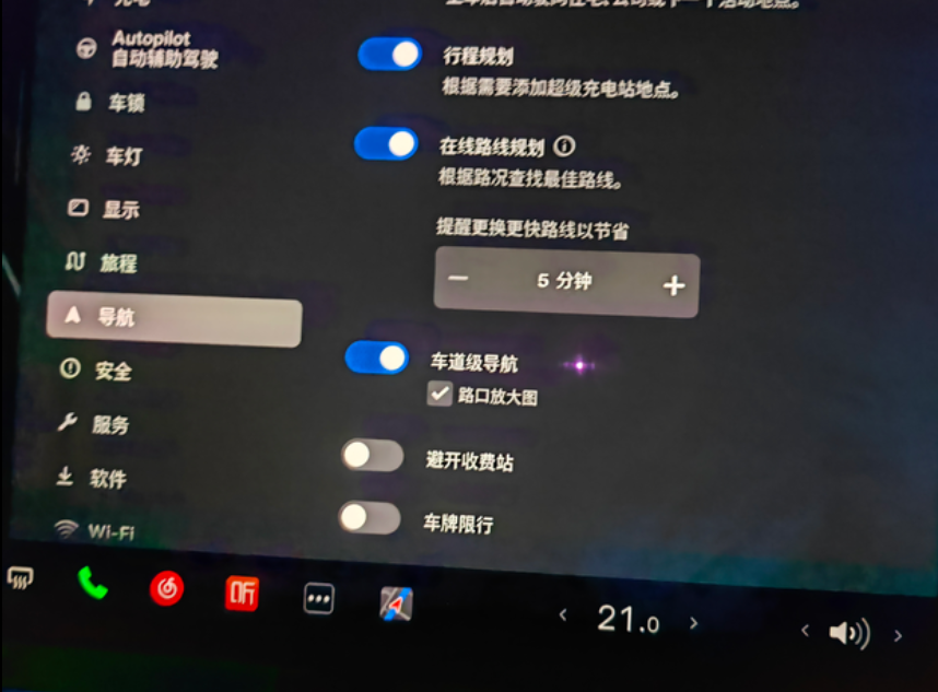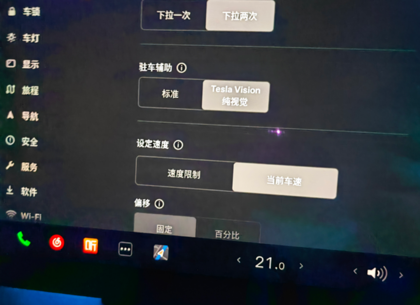 Model Y 标续HW3.0 V12初体验 1,驻车时大大的车显示在屏幕中央,大气不少,车门状态及前后备箱开关显示更大更直观。 2,刚刚升级好发现是没有车道级导航的,导航菜单下也没有车道级选项,急着回杭州没多弄,以为hw3.0被区别对待了升级了寂寞。上高速前去了下厕所,上车我重新进菜单就有了车道级导航开关,过收费站顺利跳出车道导航。 原来在市区高架,想要车道级只能开手机手机导航,现在百度V20上车,方便不少,而且限速提示也有了,真棒👍🏻 3,驻车辅助,低速或刹停时 Tesla vition,纯视觉3dD渲染,还不适应,习惯了雷达,这个不是问题。咱3.0有雷达,不喜欢渲染的直接切换到原来的。下午也刷到个视频,有个3.0车友升级到v12,用EAP召唤,眼睁睁看着擦车,小撞了一下。可能3.0对纯视觉方案的兼容性还有待验证,也希望是个例。 4,最后,有个问题,自动远近光打开的,以前会自己跳远光,升级后似乎不会自己开远光了,得手推开启,并且不会自己关闭,虽然远光灯图标中间有个A,但我今天升级后真的不会自己切到近光。不知道是逻辑问题还是Bug,你们的呢有这问题吗?