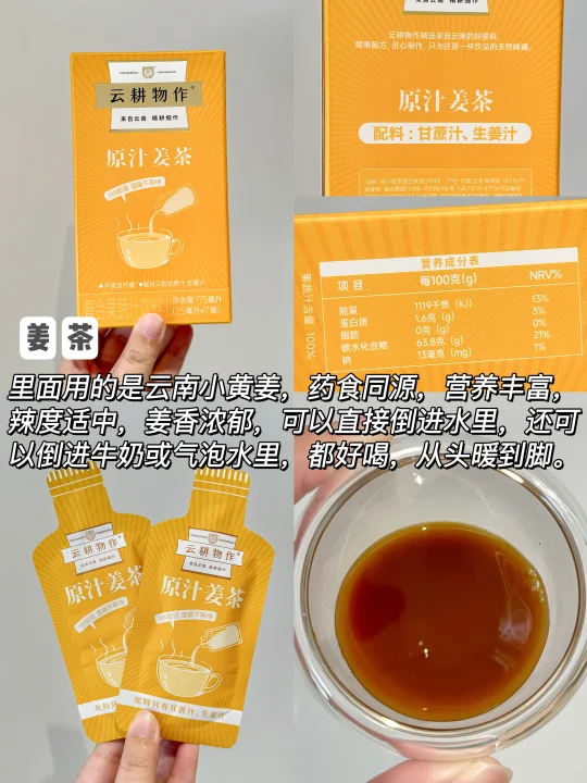 选姜茶重要的就是看姜,这个里面用的是小黄姜,药食同源,营养丰富的同时,辣度适中,姜香浓郁,喝完全身暖暖的。可以直接倒进水里,还可以倒进牛奶或者气泡水里,都很好喝,坚持喝,从头暖到脚。