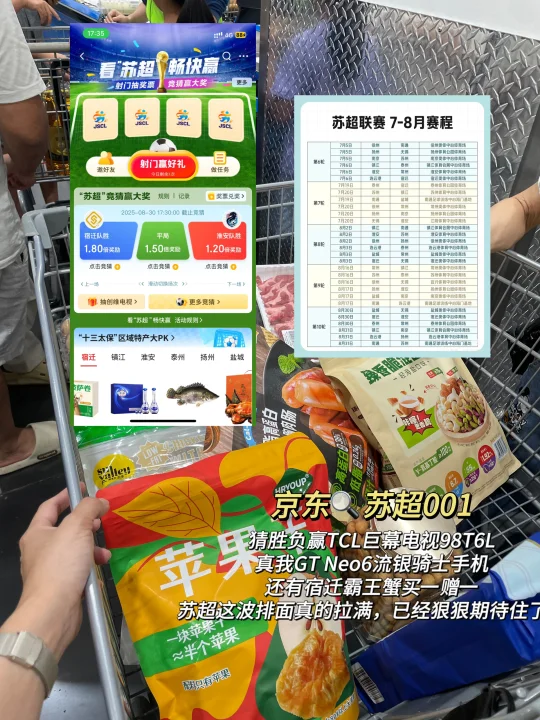 ✅宝宝这周陪我看苏超哦~咱俩买点零食一边吃一边看,想想就幸福,这周苏超可是赢来了赛季最大牌面,绝对不能错过,而且!我听说看苏超猜胜负还有可能赢百时TCL巨幕电视98T6L、真我GT Neo6 流银骑士手机、宿迁霸王蟹买一赠一,这波福利不要白不要!上京东搜索苏超001就可以啦,排面拉满,我已经超级期待了~