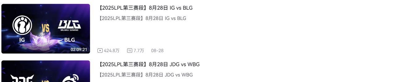 IG和BLG第三赛段的的两回合BO3播放量太变态了 IG打BLG8.28那场现在