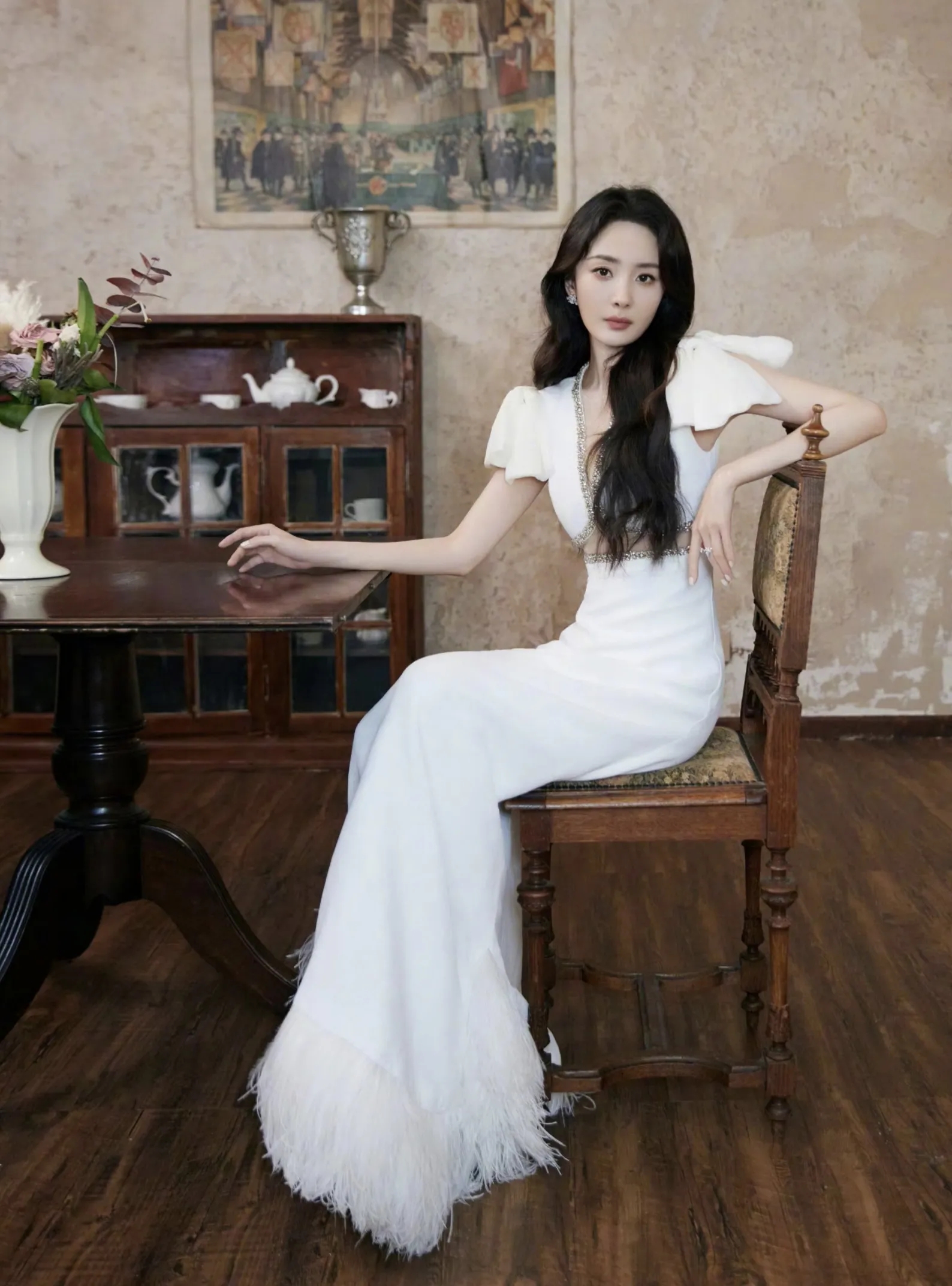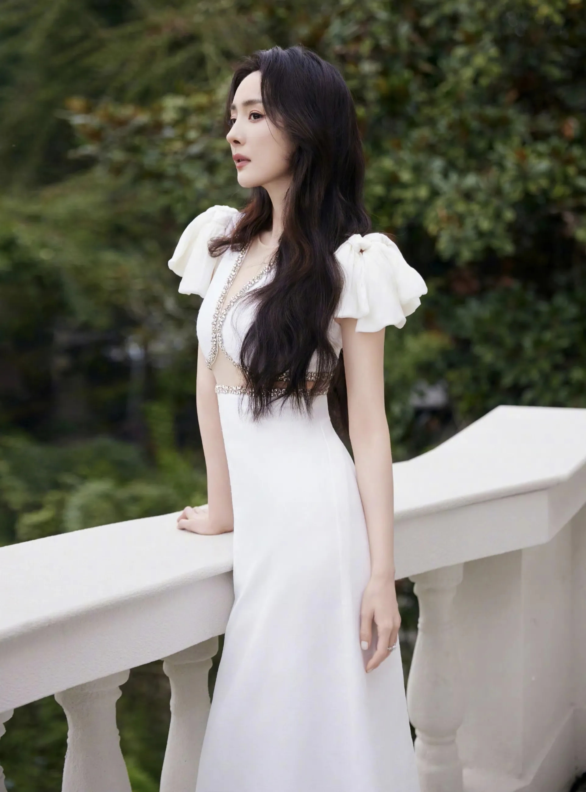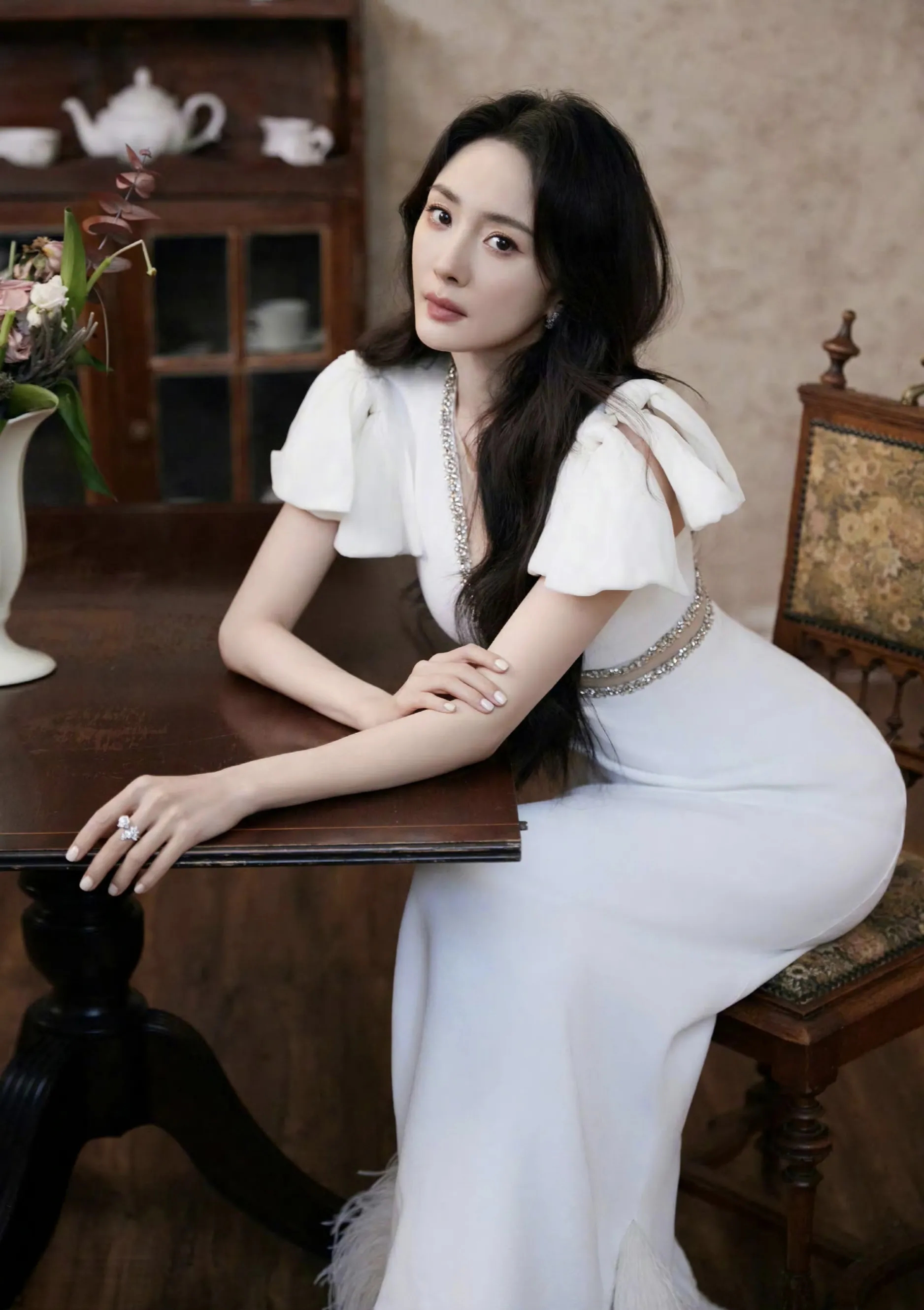 杨幂的S型曲线弧度也太大了,谁看了不迷糊呀。白色鱼尾裙既优雅又性感,简直就是麻麻