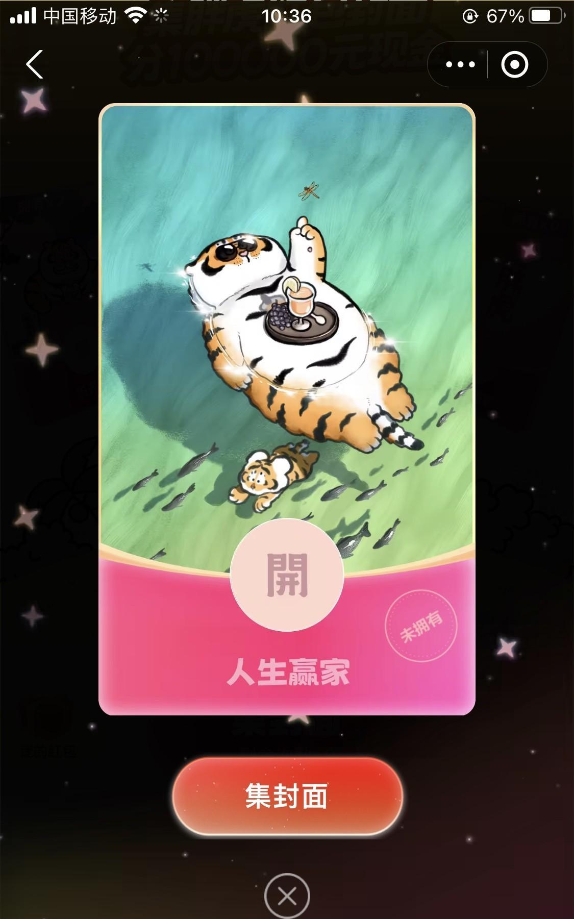 过程不是很艰难,就集到了稀缺卡胖虎“人生赢家”,这样的话,集齐了5种红包封面,可