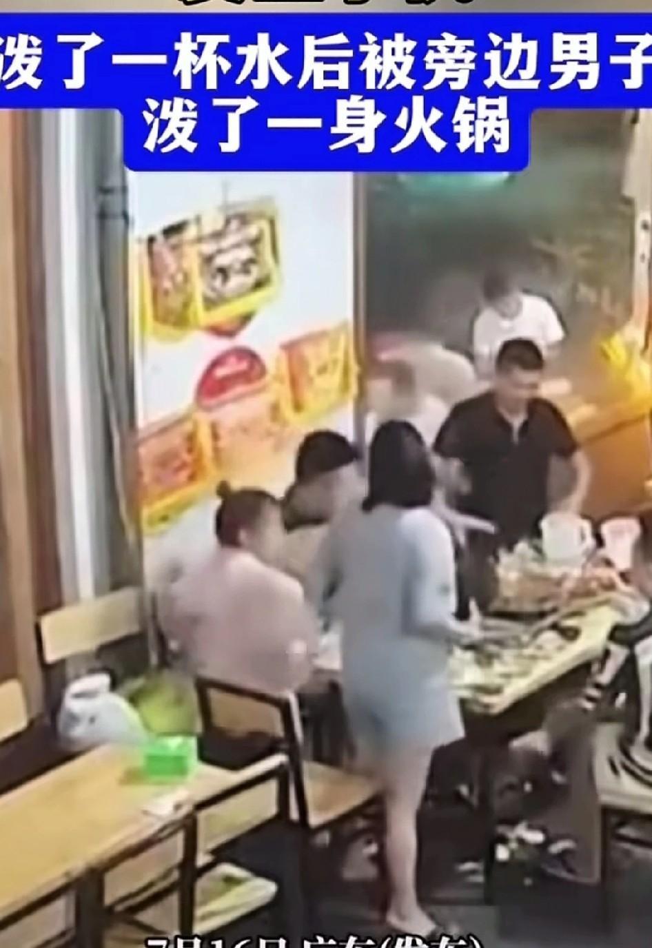 火锅店里,一位女人把水泼向男人的脸。没想到,男人的反击来的那么猛烈,周边的人都惊