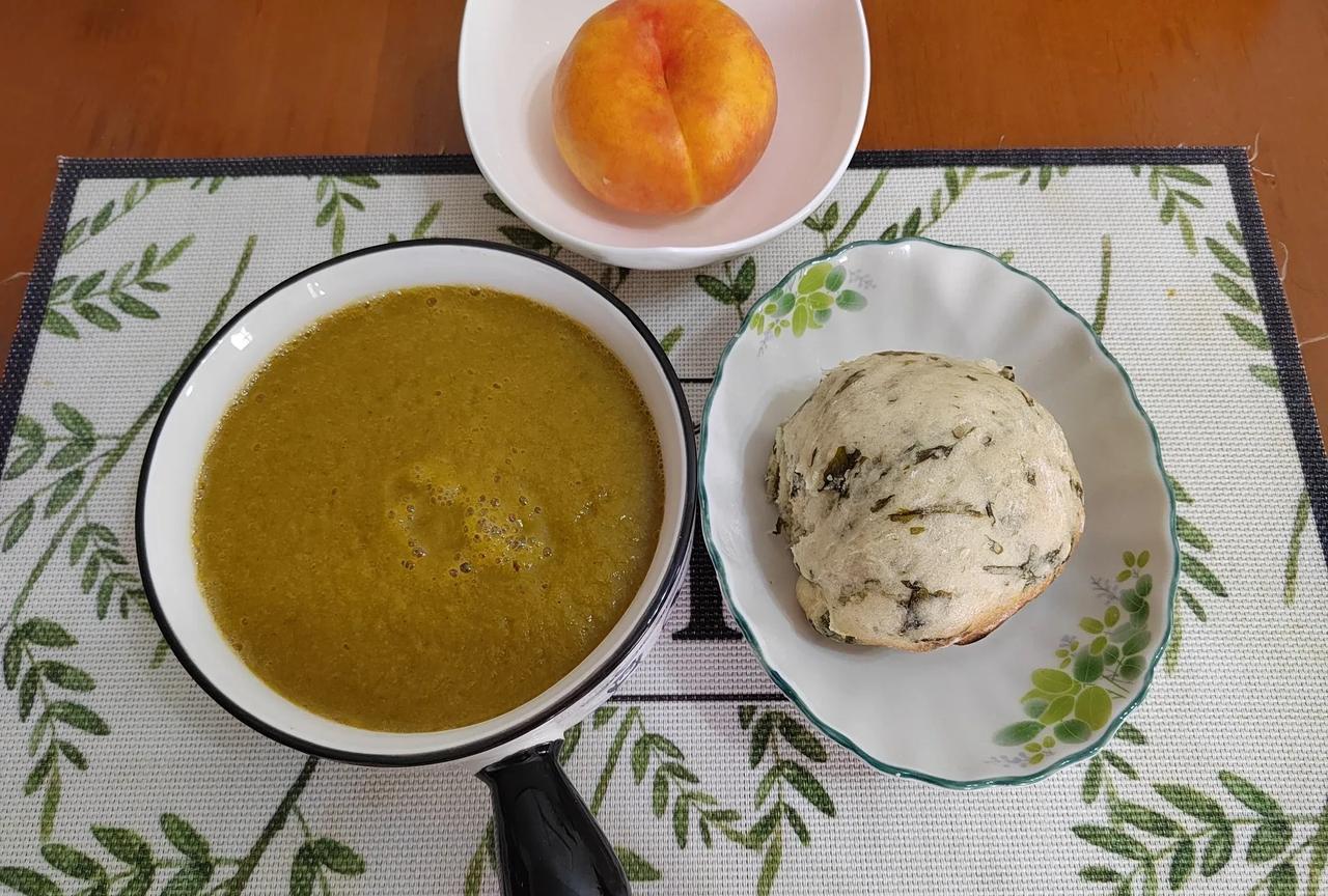 早起好一顿忙活,蒸了一锅蔬菜大馒头,又做了一碗蔬菜汤。 虽然是一个人生活,但是小