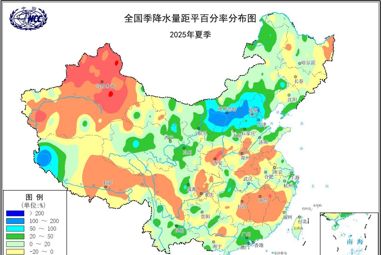 无疑,今年夏季又是个大热夏,新疆和中东部一带为两大热中心。特别是陕西关中至黄淮区域偏热幅度可达4-6度,相当少见。季节降水方面,华北东北、长江中下游沿线以及西南华南一带累计降水量达到400-600mm以上,部分地区达到800-1000mm甚至更多。降水距平分布上依旧是北多南少,但北的幅度超预期、南少的边缘来到黄河沿线。