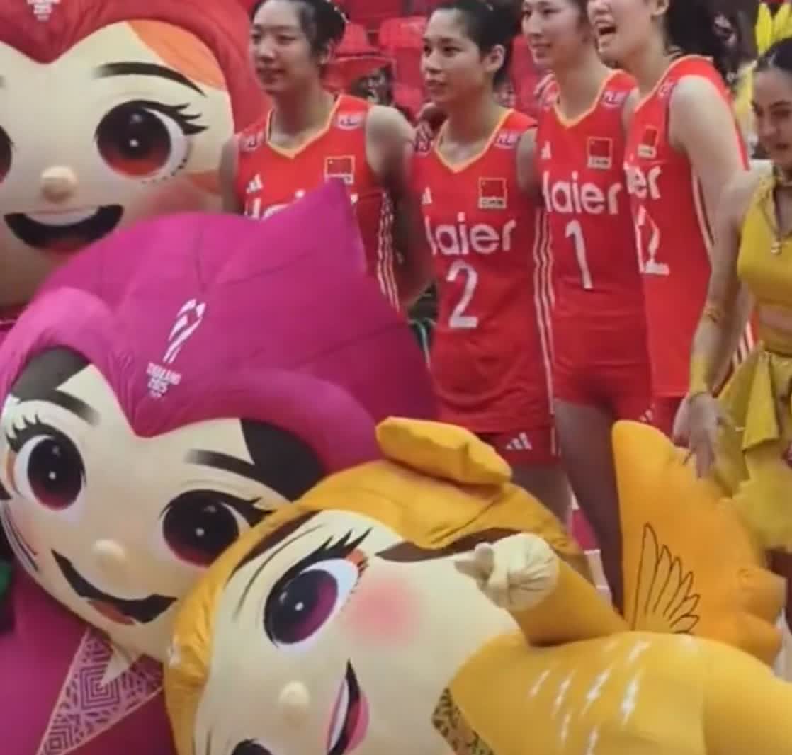 好感人的一幕啊!昨晚上输给法国女排后,吴梦洁自责得哭成泪人,李盈莹和庄宇珊都跑过去安慰她,安慰完之后,庄宇珊、李盈莹、唐欣拉着吴梦洁跟吉祥物拍了几张照片,拍照的时候,庄宇珊和李盈莹还在提醒吴梦洁要开心一点,吴梦洁强忍着笑了一下,中国女排主攻组吴梦洁、庄宇珊、李盈莹、唐欣在泰国曼谷拍了一张具有纪念意义的照片!小吴要记住这场失利的痛,以后会成长得更快的!