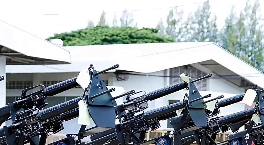 泰国军队的三联装M16自动步枪反无人机平台,能搞出这样设计的人,绝对是脑洞大开了