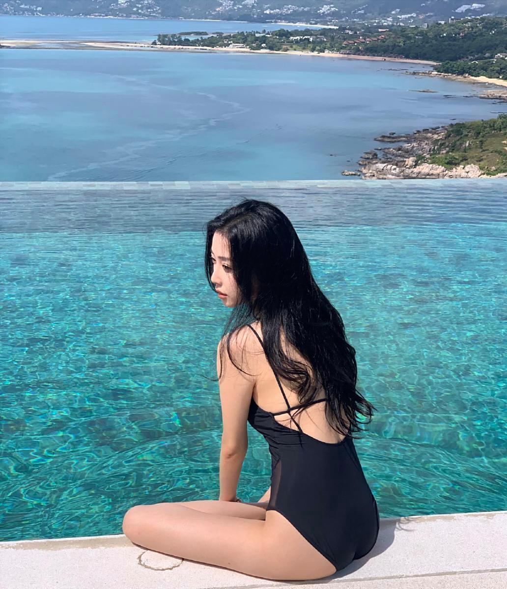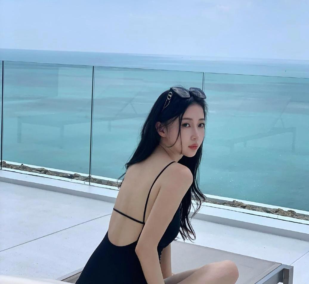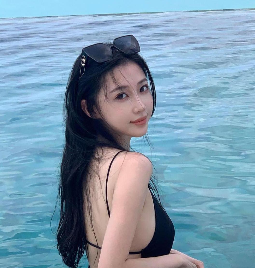 潘玮柏老婆宣云到海边度假,她穿着一条吊带泳衣去游泳,身材真的太好了,皮肤好白,真