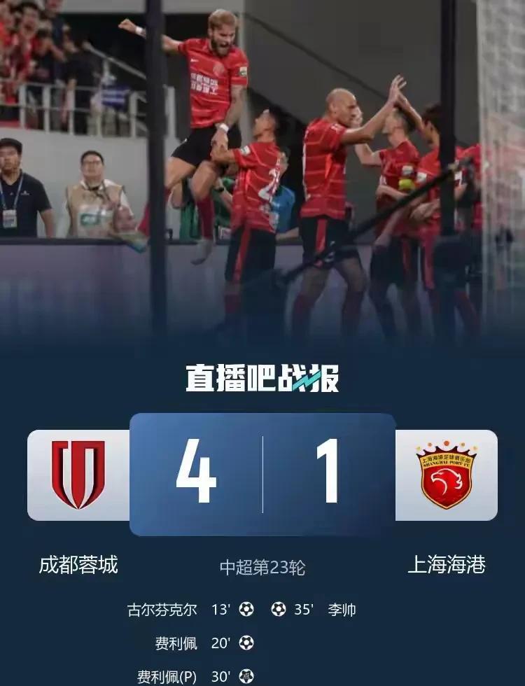 中超第23轮诸强总结— 海港:叹!没想到竟然被蓉城赛季双杀。 蓉城:喜!努力了大