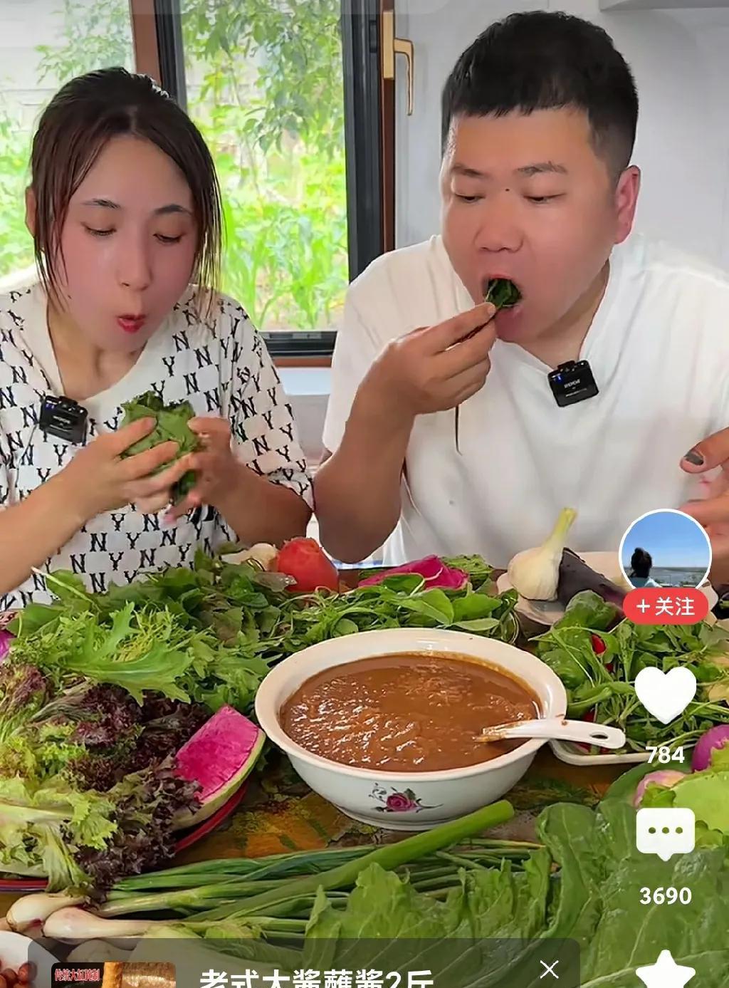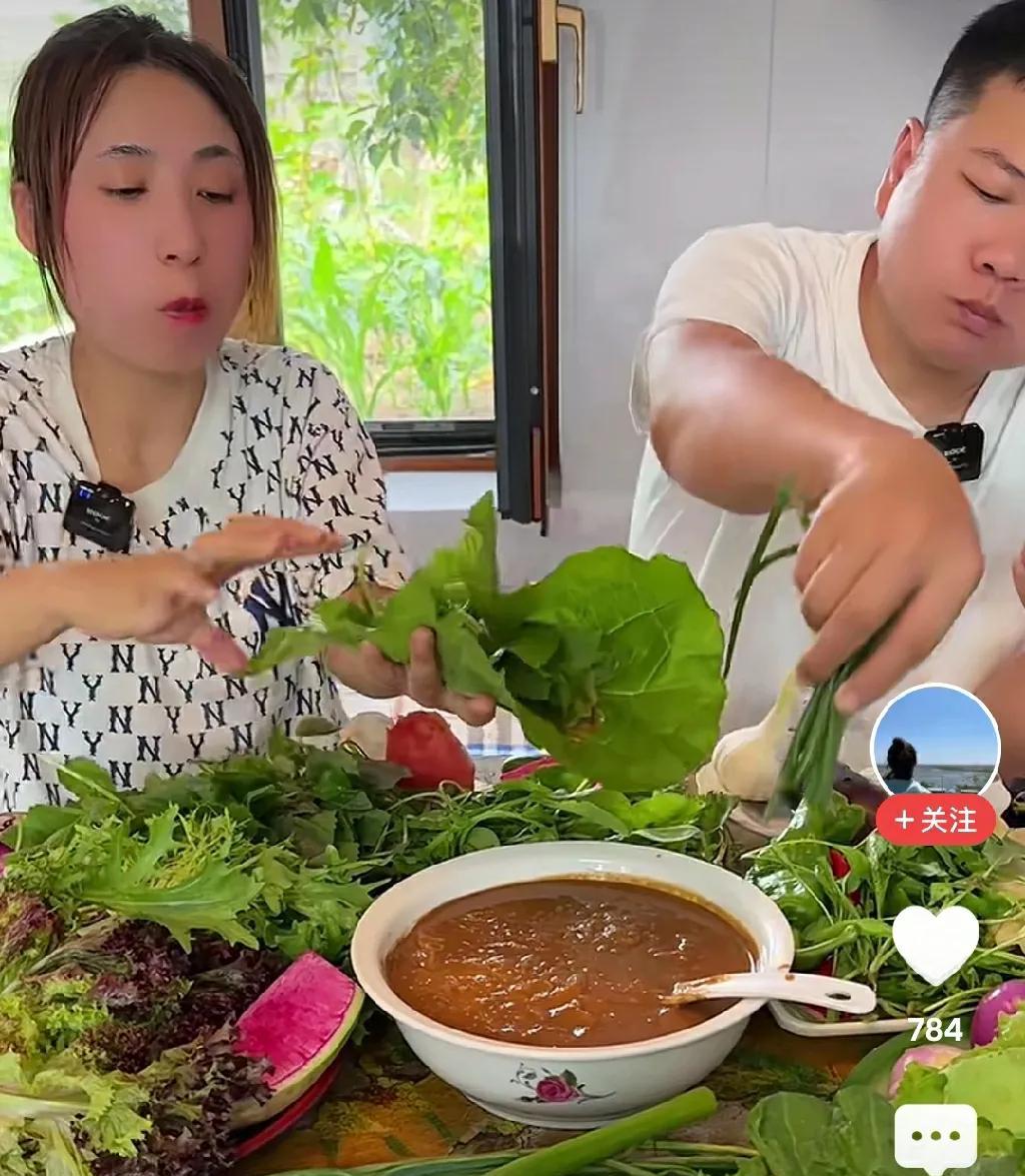我肯定是不买,和大酱无关。 看看这场景,不知道的还以为是掉猪圈还是兔子窝里了。满满一桌子绿菜叶子,大白菜,小红萝卜,大蒜,蒜苗,生菜。你想卖你家的大酱没毛病,你两倒是有点吃相。手里拿着一大堆,一句话不说,满嘴了还就是使劲往里塞。猪圈里的猪都不这么吃。看着都恶心。你家的大酱吃了能长生不老还是咋地? 真是不明白这些人到底是怎么想的。可能是我们普通人还没参透其中的奥秘。我认真的看了评论区,大多数的人都在骂。难道真是骂的人越多,关注的人也就越多,大酱就会卖的越好?有没有明白的网友证实一下子,真的是这么回事? 就这种卖酱的方式不是个例。有很多的“大酱博主”都采用了这种变态的方式。其中有一个老头子,我看过他吃生土豆子蘸酱,生姜蘸酱,哈密瓜蘸酱,凡是能入口的东西皆可蘸酱。急眼了苞米杆都能蘸酱。那老头子比这两厉害多了。 年轻人,继续努力啊,向你们的前辈学习。争取来个盘锦大闸蟹蘸酱,咔咔就是造。 东北人的形象让这些玩意儿就给败坏了。