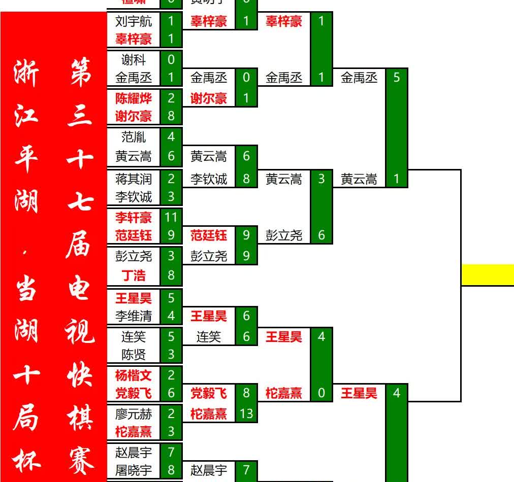 今天9.1日上午9:30分,第37届电视快棋赛,当湖十局杯8强赛开赛,到11时3