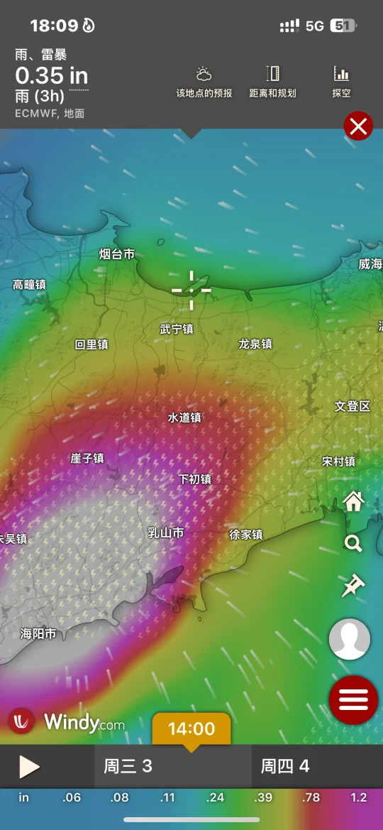 Hi.宝子们好,欢迎来烟台旅游观光!天气基本三天内准确度高!