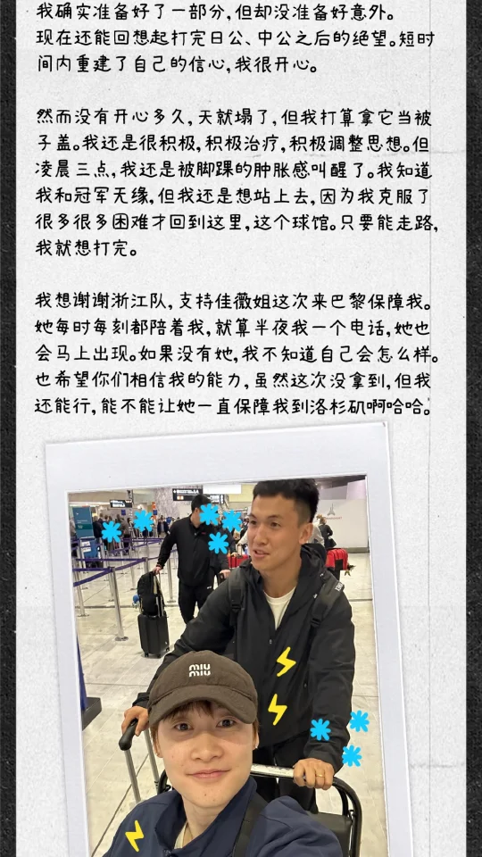 20250901|陈雨菲工作室更新来信 七月,她说要停更,要憋着一口气去巴黎🇫🇷👊 九月,她决定复更,菲室必须陪她一起加班💦😺 凡是发生皆有利于你,好好治疗、康复🍀 享受过程,尊重结局,巴黎结束,迎接下一趟旅程👋🏻