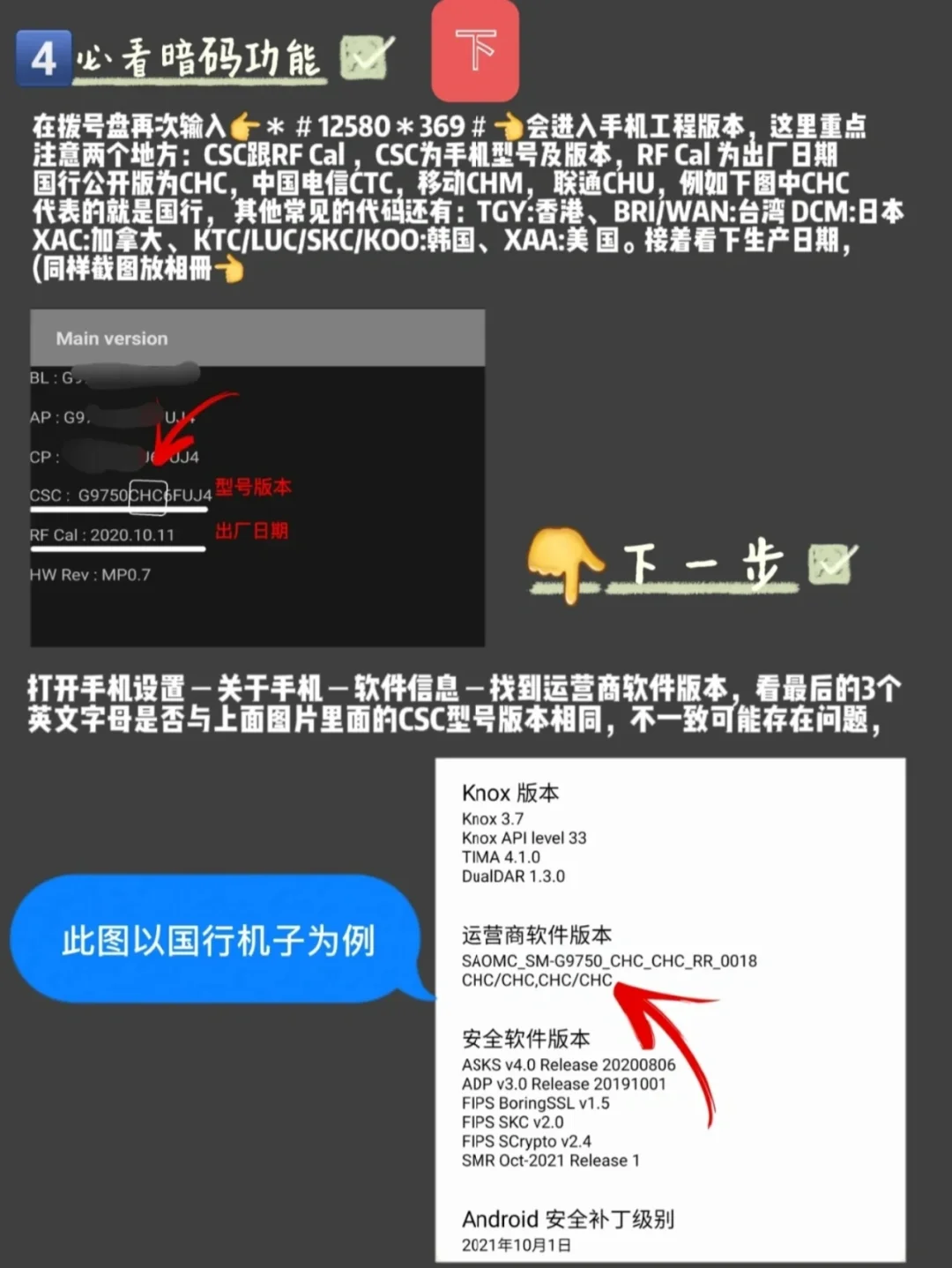 不同版本的三星手机都有不同版本标识,结合自己买的机型进行对照,是否与先前购买的一致