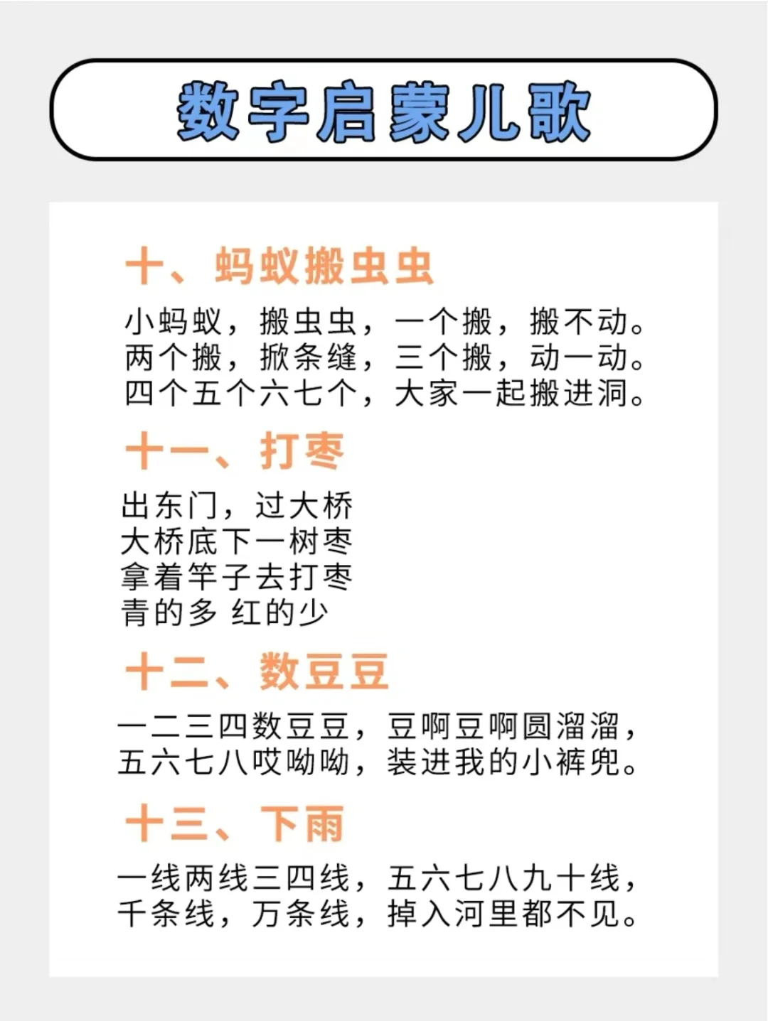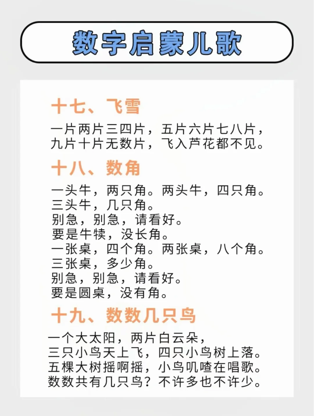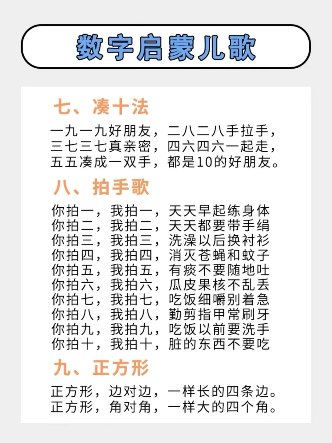 数字宝宝排排站,一二三四五六七。数字排队有顺序,左右相连是邻居。一二三四好朋友,从小到大手拉手。五六相邻天天见,五七相隔见面难。遵守纪律不捣乱,从小到大一排站。