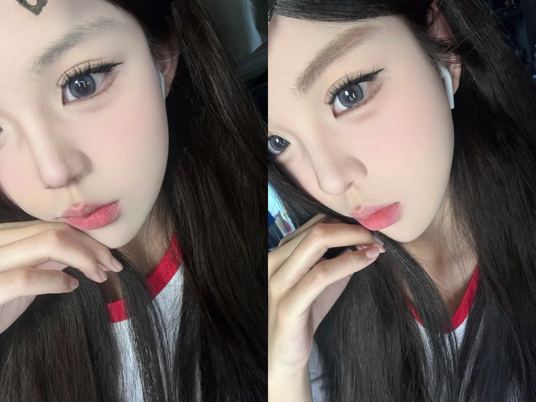 总有宝子问清透感妆到底怎么画? 色系统一是灵魂,眉毛别画太黑!和发色越像越自然~ 我一般先用眉笔勾勒出眉形,然后用染眉膏把眉毛的颜色刷均匀,和黑眉相比,整个人看起来真的巨巨温柔 染眉膏我用的是摇滚甜心03粉咖椰椰 基本不挑人 还巨显白!!能让妆容看起来更干净精致 ~