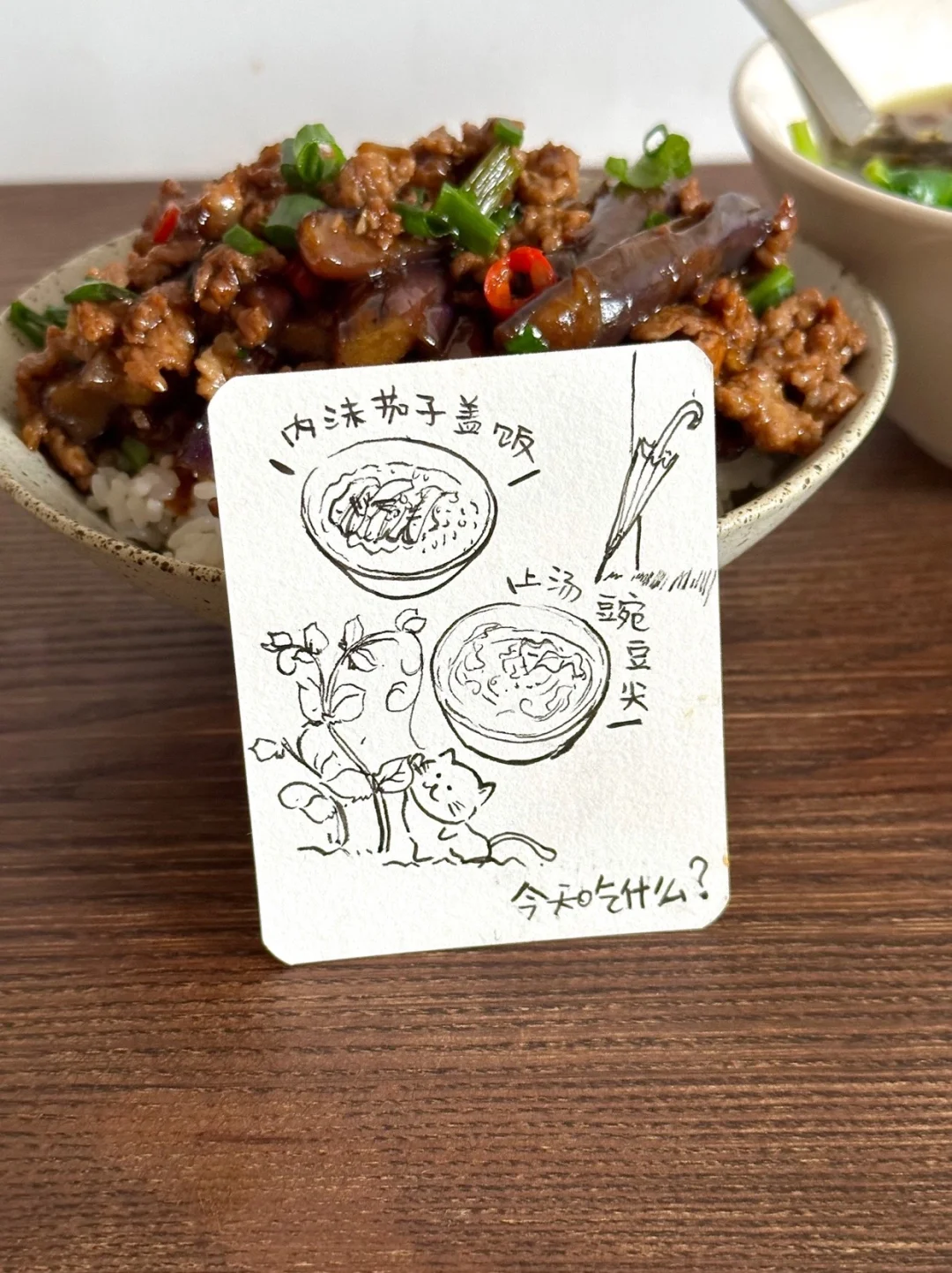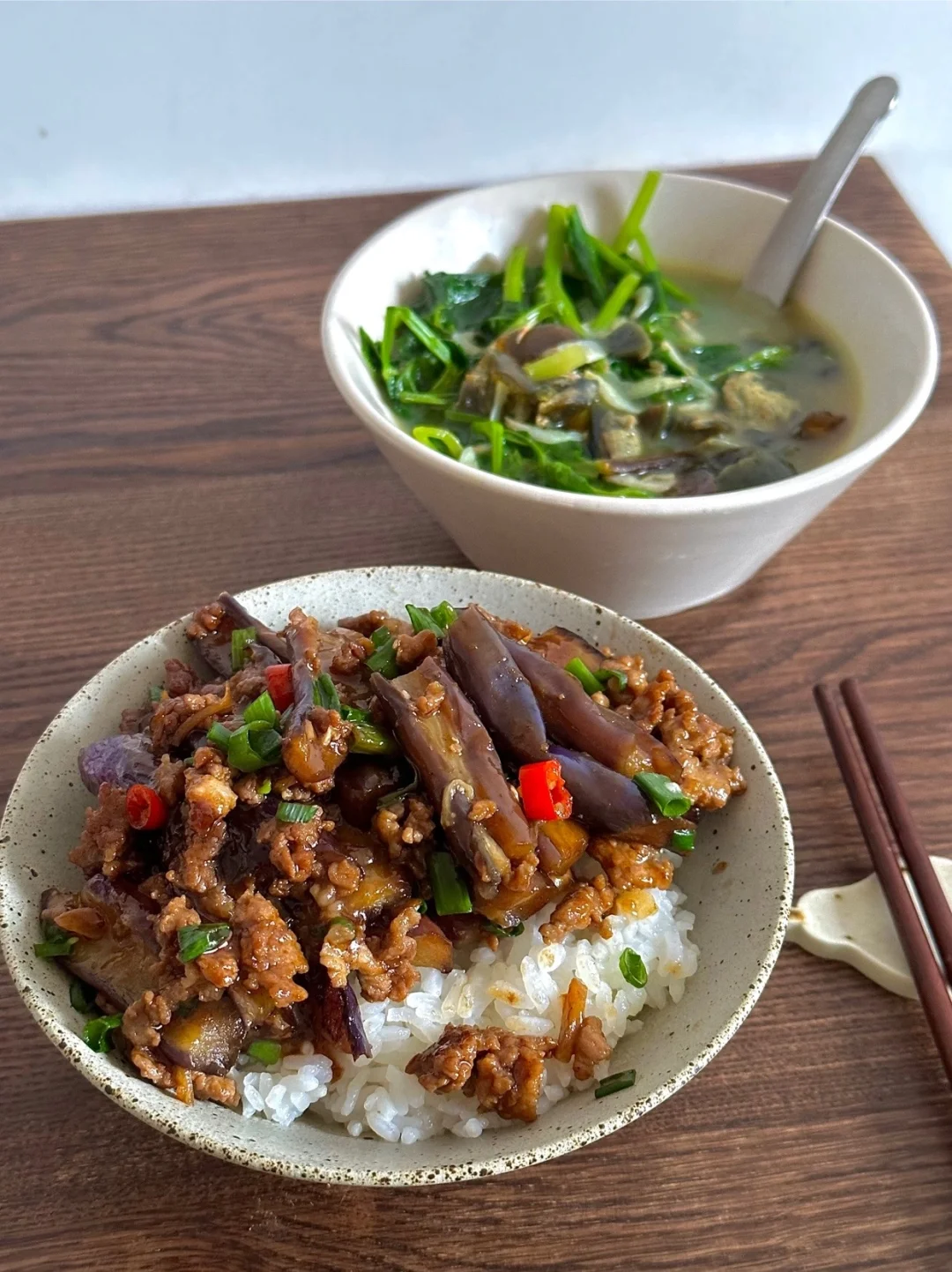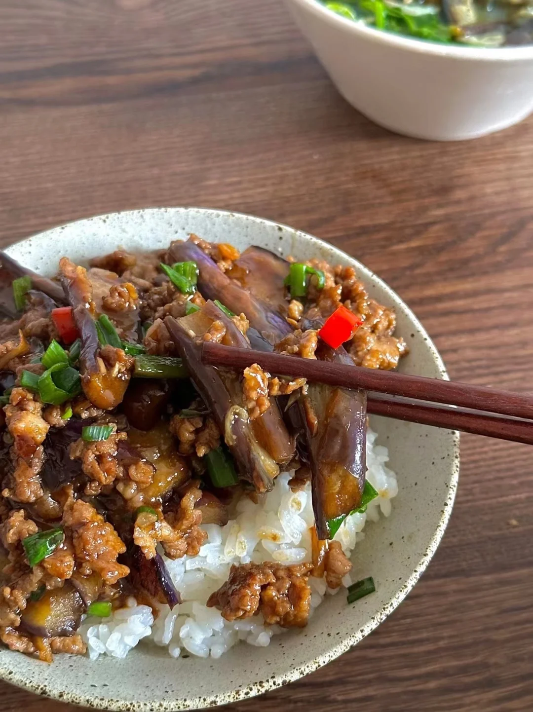 肉沫茄子盖饭,😋 每一口都能吃到茄子的鲜嫩和肉沫的香味,搭配米饭的口感,美味!