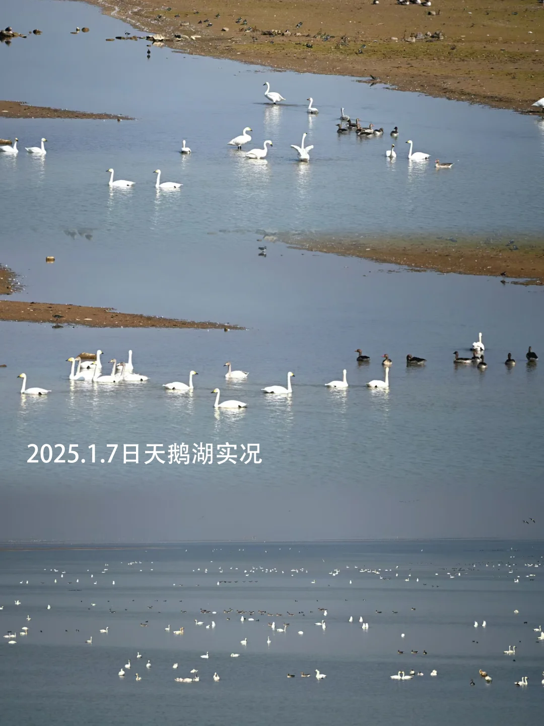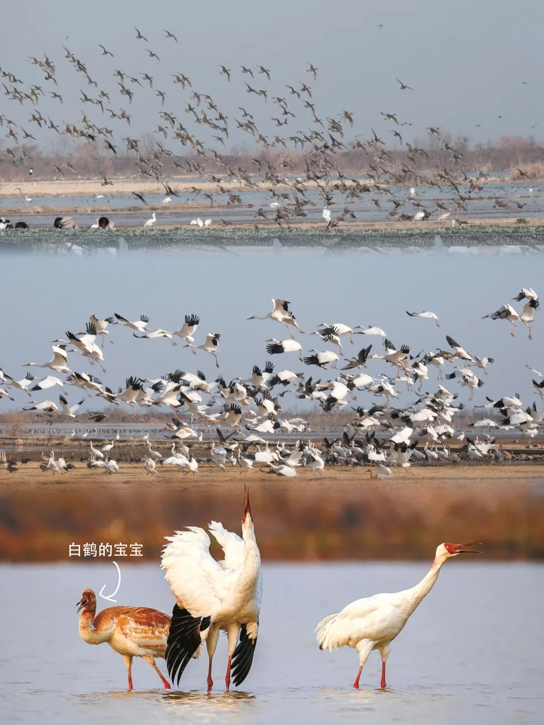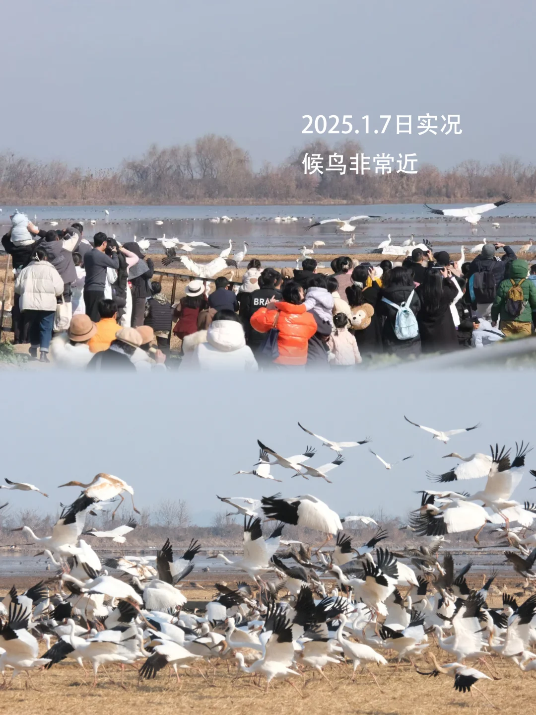 推荐理由🔥:沿着大坝一路走,会遇到成片美丽的🦢天鹅在湖里嬉戏玩耍,🉑近距离观察成片的小天鹅种群、列队休整的鸬鹚军团、低头觅食的灰鹤家族、飞出幻觉的反嘴鹬鸟浪;去见识上千只的白鹤、灰鹤集体觅食的大群,如果运气足够好,还能见到白头鹤、白枕鹤;