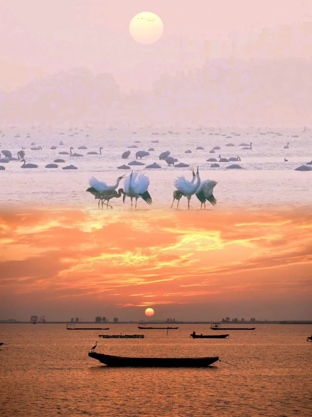 🔜如想拍夕阳落日建议上午看江豚,下午先看天鹅再去看白鹤,就能拍到橘子海啦
