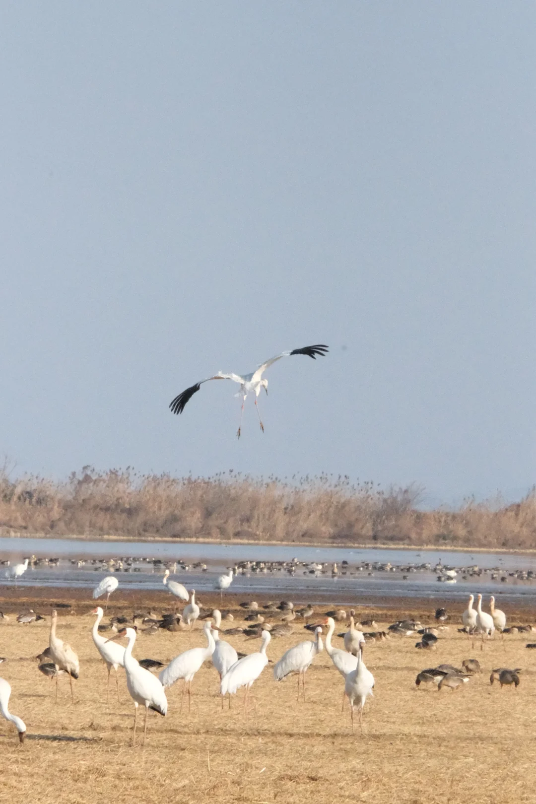 鄱阳湖越冬的水鸟种类极多且数量巨大, 你可以看到白鹤、鸿雁、东方白鹳、白琵鹭等数十种水鸟,数量多达60万只。