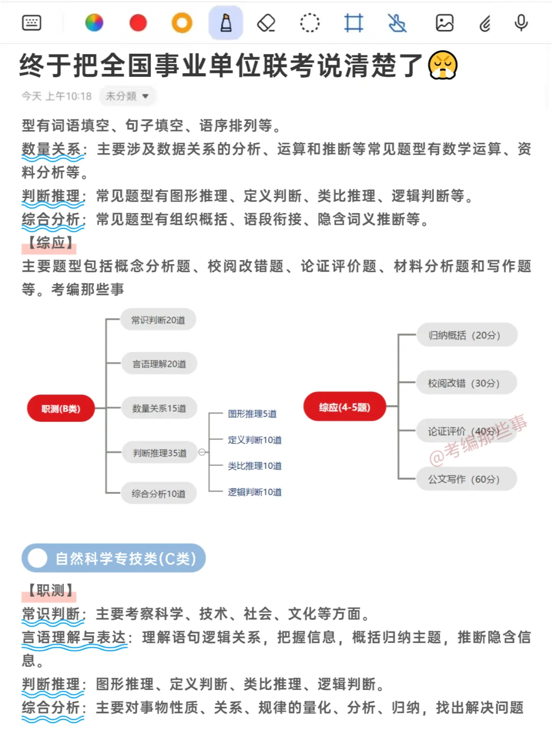 综应:由注意事项、背景材料和试题三部分组成全部是主观性试题。内容主要涉及事业单位管理岗位典型的工作任务,一般以案例分析 (观点归纳等)、公文写作 (信函通知等)两种题型