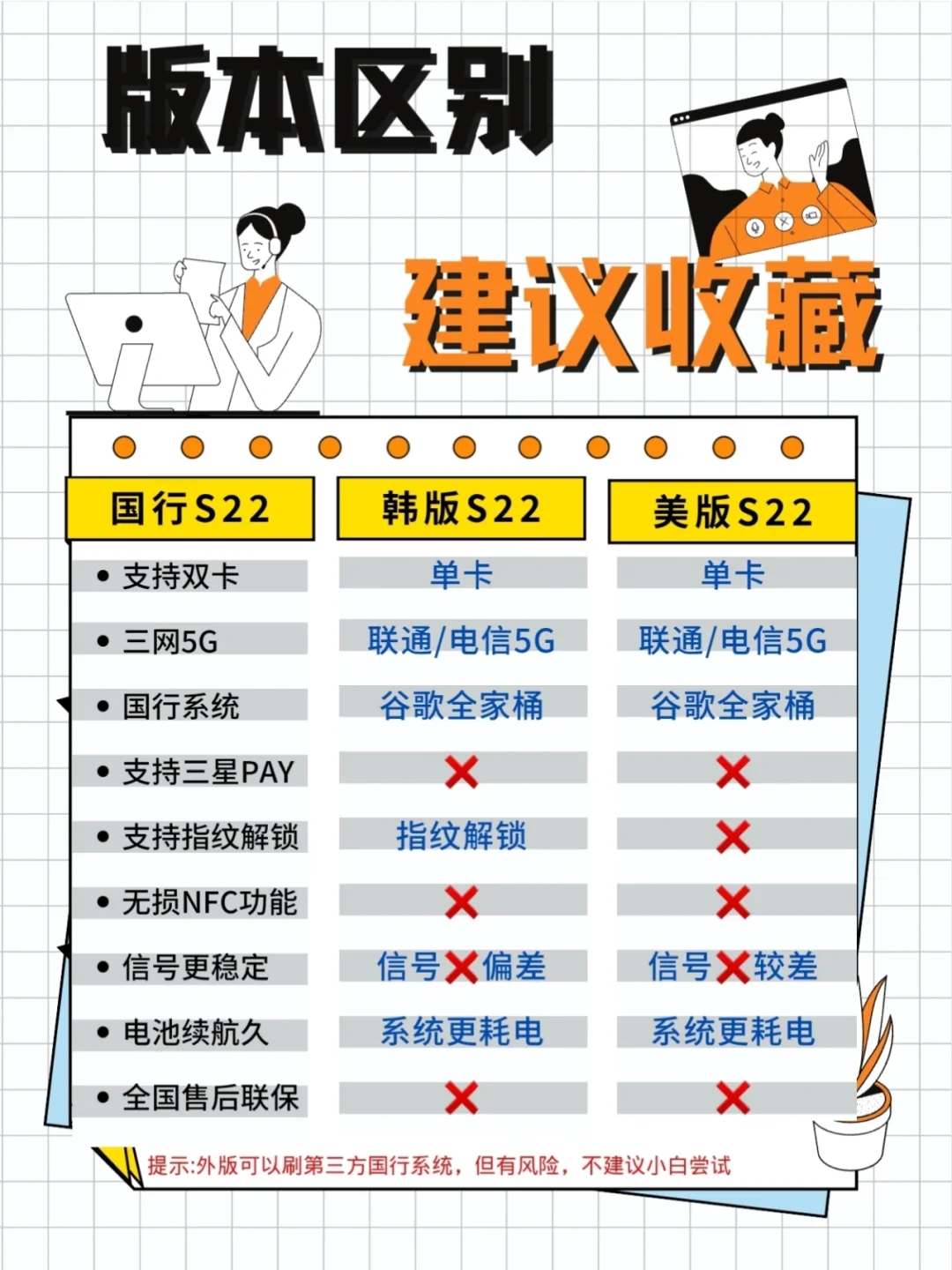 Hi、我是星球人小助手,目前市场上除了国行三星手机外,还有着各种版本的三星手机,如韩版、美版、日版等等、简称外版机,由于外版价格市场鱼龙混杂,很多刚接触三星的小白就很容易踩雷,如果目前你准备入手三星,或者已经入手了三星,那这篇笔记对你一定会有所帮助👉【建议收藏】