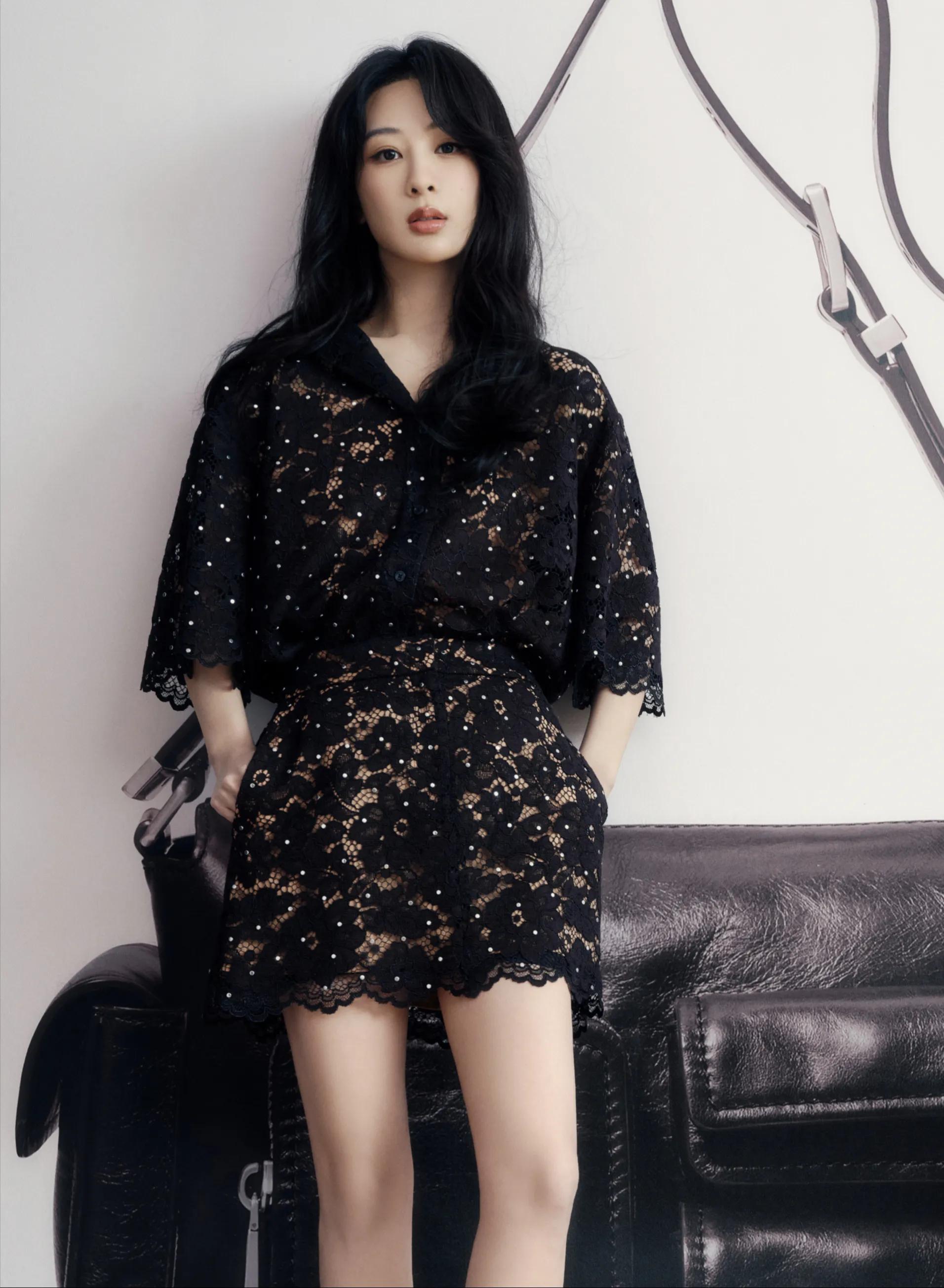 杨紫黑色蕾丝短裙,紫妹展现成熟女性之美