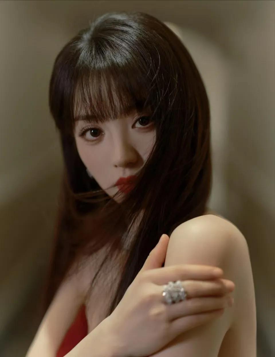 鞠婧祎香槟金撕拉片,慵懒居家风,清冷与妩媚共存