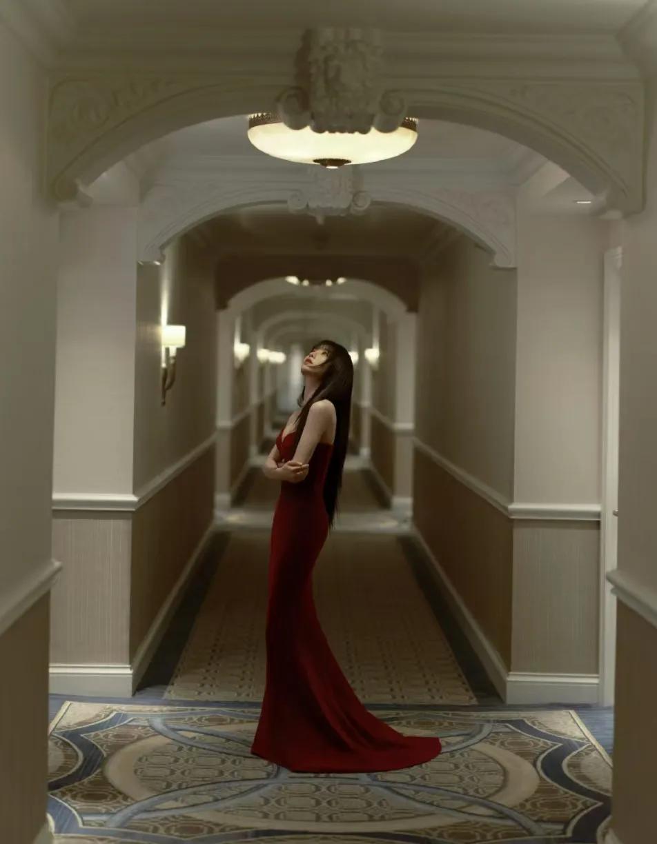 吊带鎏金长裙宫殿封神,转身那刻美到全场窒息