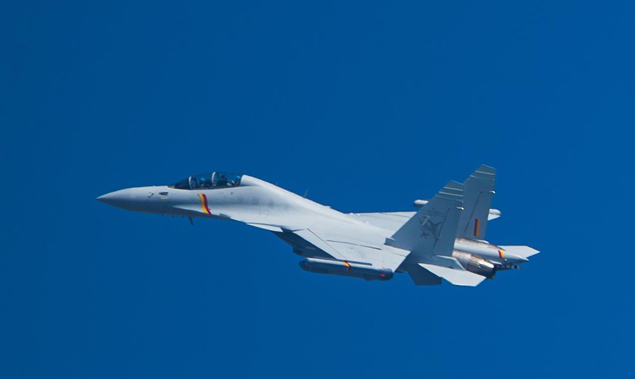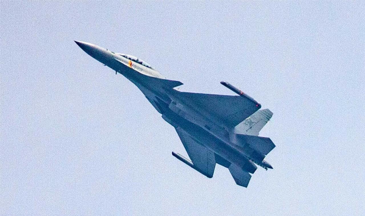 在此次阅兵中,出现了歼15-DT弹射电子战版。 中国首款舰载机歼-15“飞鲨”于