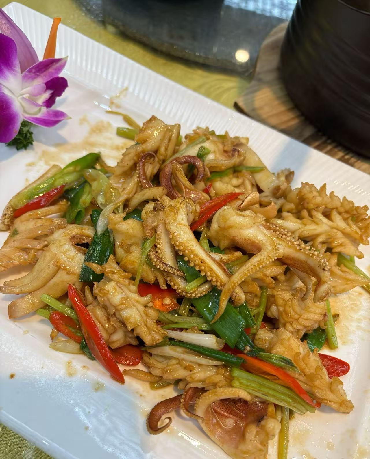 ✅葱花炒鱿鱼、芡实芋头煲、海蟹、砂锅粥等美食。