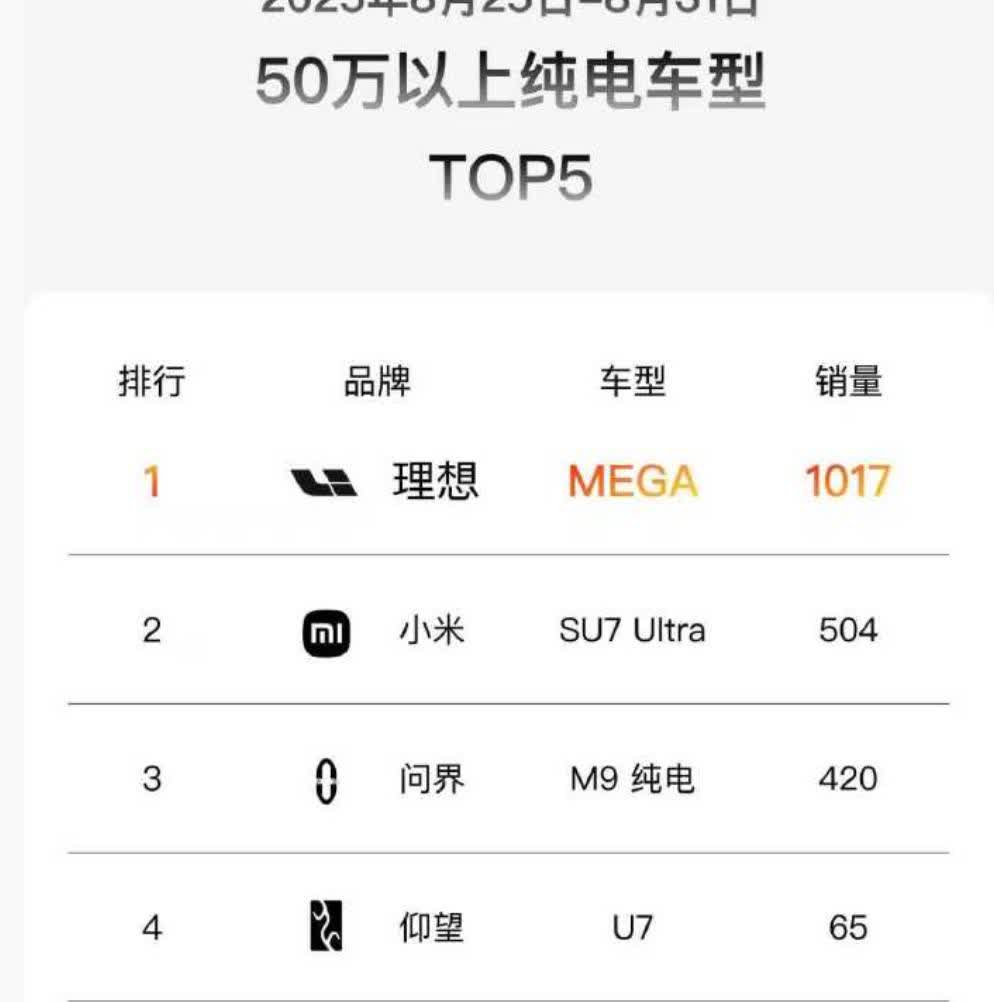 向月销5000迈进,理想Mega向梦想前进! 理想Mega的销量近期持续回暖,上个月刚刚完成月销3000大关,上周的周销又突破1000,意味着9月月销4000有很大可能了,增长势头很猛啊。 如果Q4能实现月销5000,那真的算是梦回巅峰了!