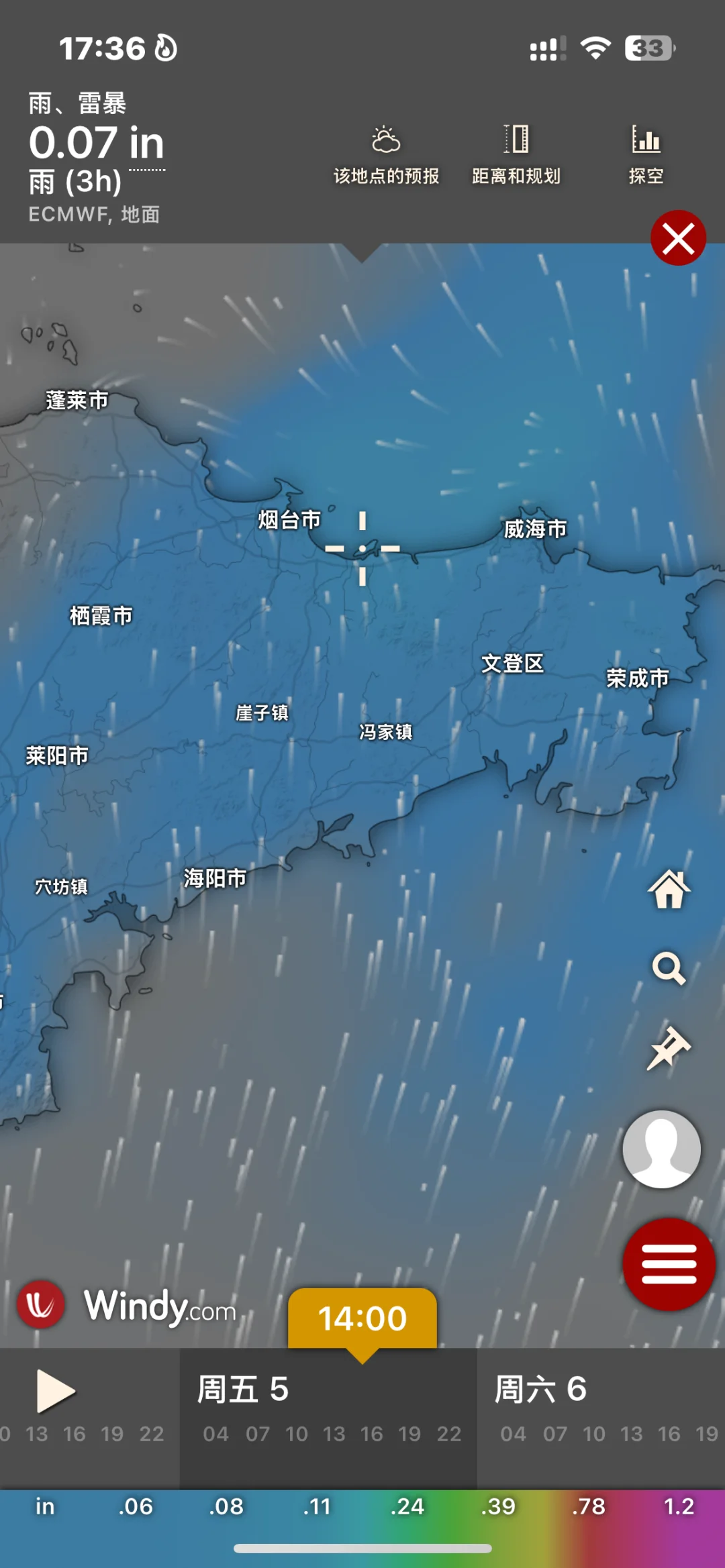 Hi.宝子们好,欢迎来烟台旅游观光!天气基本三天内准确度高!