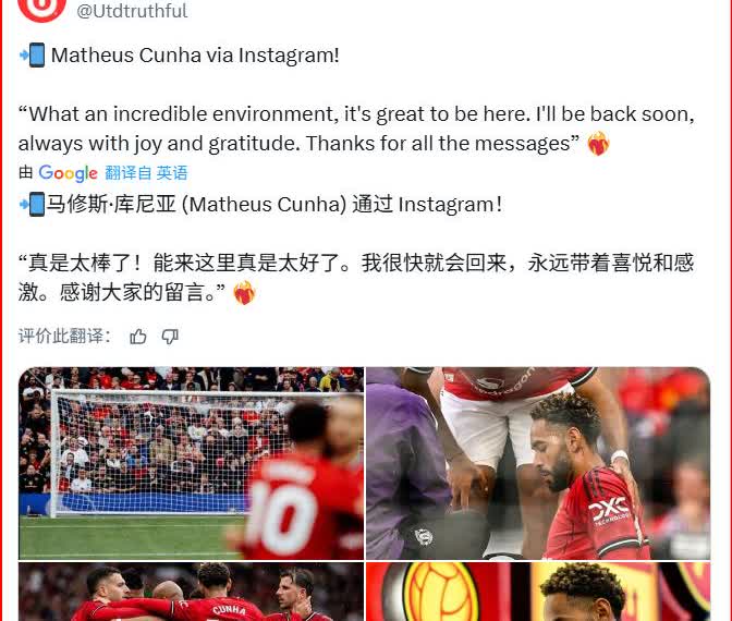 库尼亚已经恢复了训练 库尼亚的伤病据说是不严重的,不过具体伤病程度还是不清楚,如今库尼亚已经恢复了训练,目前普遍的消息是,国际比赛日后就能出场比赛了。库尼亚也更新社媒,表示很快回来。 库尼亚退出了本期巴西国家队的集训,目前留在曼彻斯特全力康复。反而是芒特,目前虽然没有具体的情况,可是得到的消息是至少2-4周,而按照之前芒特伤病的惯例,芒特是伤病时间比预估的要长的多。 曼联下一场比赛是对阵曼城,库尼亚的速度和盘带,对于曼联还是挺重要的。