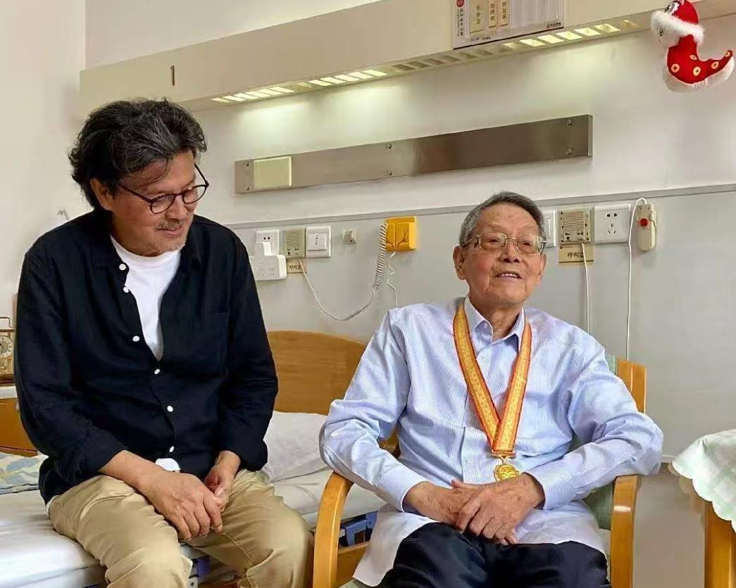 103岁老兵领章,两个明星儿子陪他乐开怀 老爷子103岁了,精神还不错,去