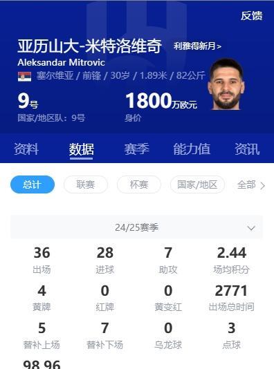 Here we go!一声吼呀!换个地方淘金呀! 罗马诺:30岁前英超前锋米特洛维奇与利雅得新月解约,加盟卡塔尔球队赖扬! 据悉,米特洛维奇在卡塔尔会拿到大约1000万美元的年薪。 米特洛维奇上赛季代表利雅得新月出场36场,打进28球。