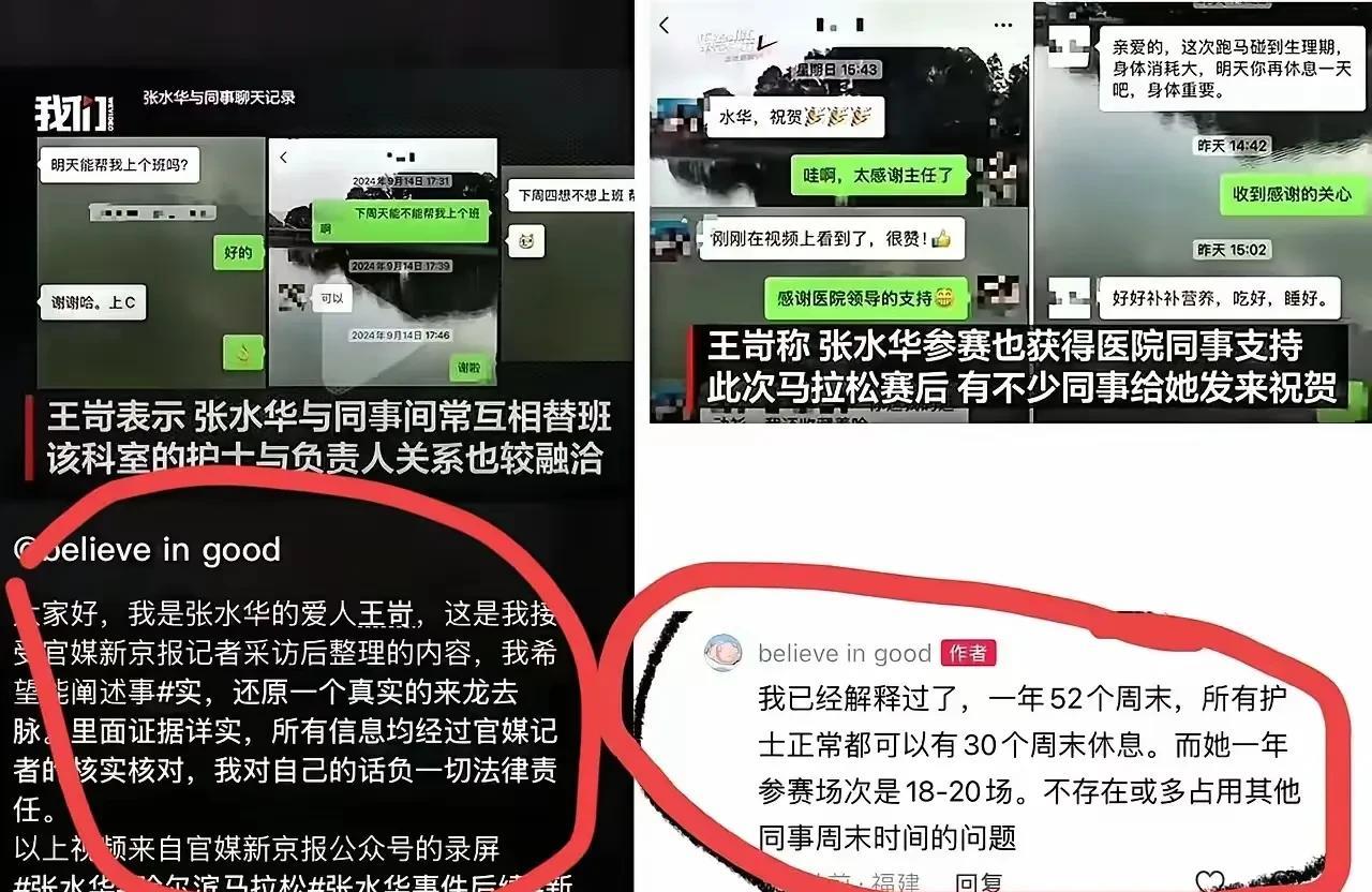 现在很多人都是拿着一些成绩一些缺陷一些特权等等,觉得自已是重点保护动物了,想为所欲为,想给予开后门、开绿灯,必须享受特殊待遇… 她不是在感恩,也不是在感谢同事,而是要逼迫领导,让领导逼迫同事主动替班,然后呢,自己坐享其成。 既不承同事的情,也不承领导的情。你们自己愿意替班! 来这一套! 看聊天记录,她更没理由哭诉调班一事了,恐怕她是觉得自己拿了好成绩,希望医院对她另眼相看,少工作,多跑步。 既有工作的保障,又有外面跑马的光荣和效益。 本来她哪怕是假装说一句感谢同事们的支持,不说换来更多的赞誉,至少不会翻车,但她太自私了,或者说想以此博出圈,结果名是出了,却引来了反噬。 都是在外地跑,怎么也得调好几天去。一周才几天!! 把客气当福气。 同事们敢怒不敢言罢了,现在她是公众人物,接受采访时抱怨几句都容易让医院遭到网暴。还好广大网友明事理。 截图看到的只有领导和同事对她的关心和支持,所以她因为什么委屈到哭?为什么说领导对她不支持?果然是一个被窝睡不出两种人 自己赢了钱,还哭丧着脸抱怨。行了,一切都结束了。那就好好的解约,丢脸吧。