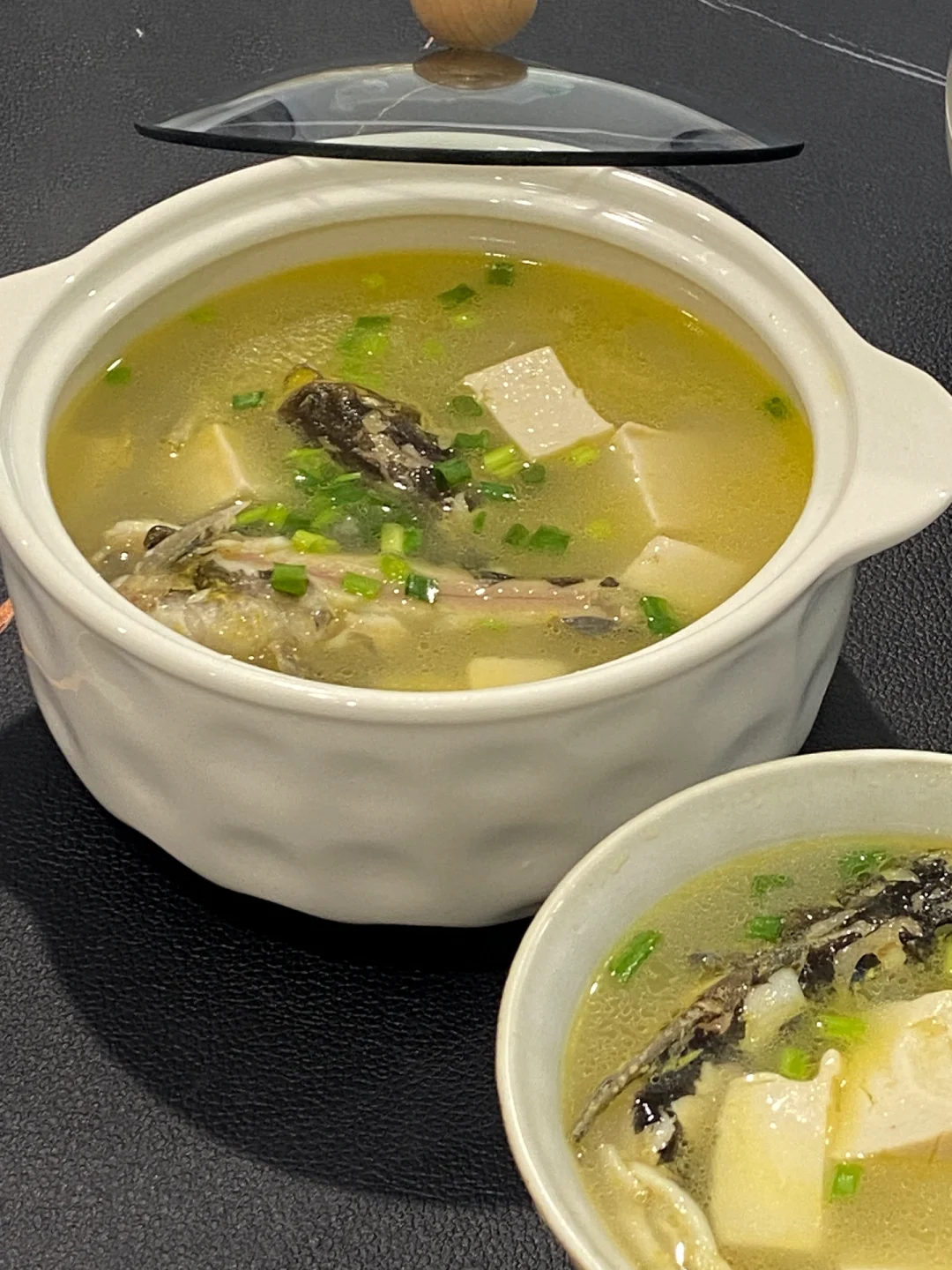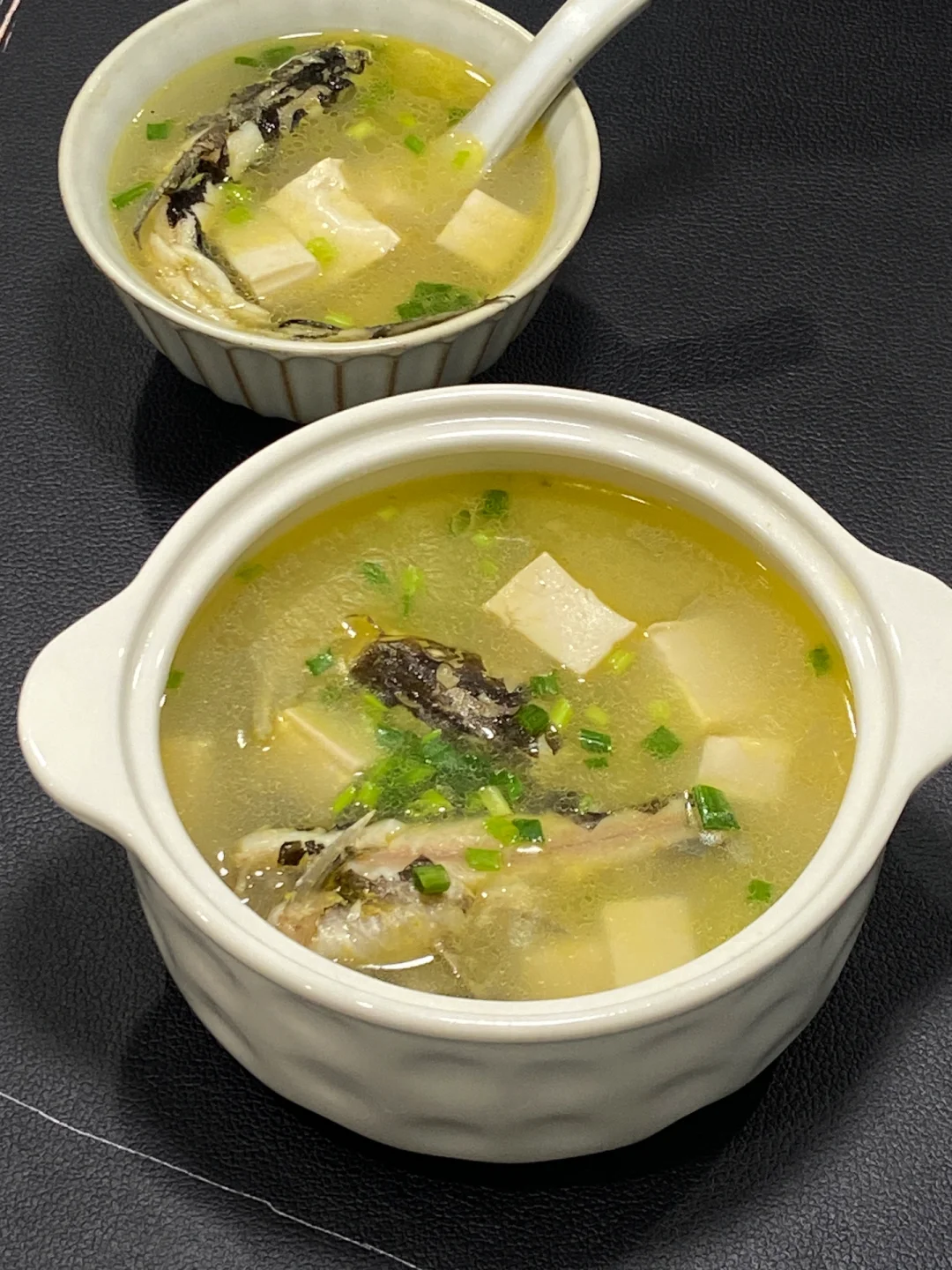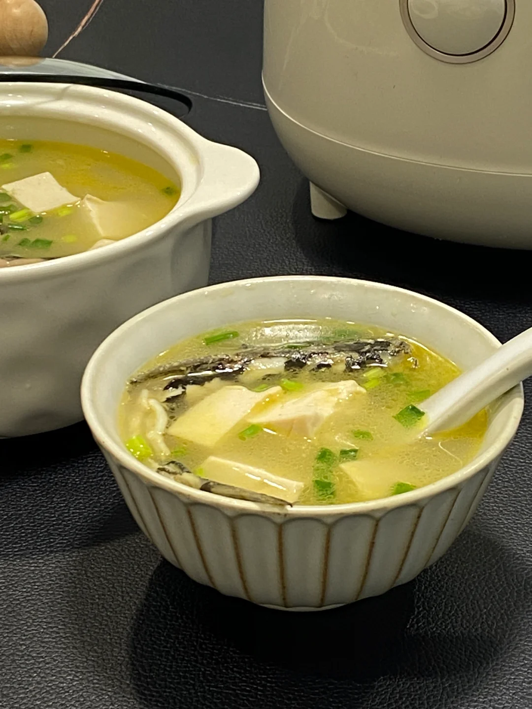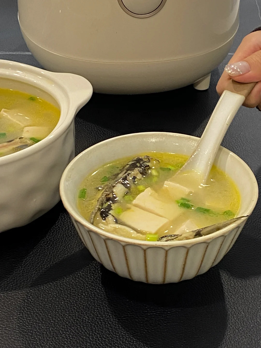 菜谱在p7 黄骨鱼汤很好喝滴,这个鱼也是基本没有刺,很嫩,推荐 奶白汤要点 先把锅中油烧热——烧热后冷却一下锅再开火起锅——下入小黄鱼煎制 tips: 1⃣️小熊二人食mini电饭煲功能比较多,煲汤是定时2小时,可以酌情增减时间,基本上鱼汤呈奶白色即可,撒一点葱花很好喝